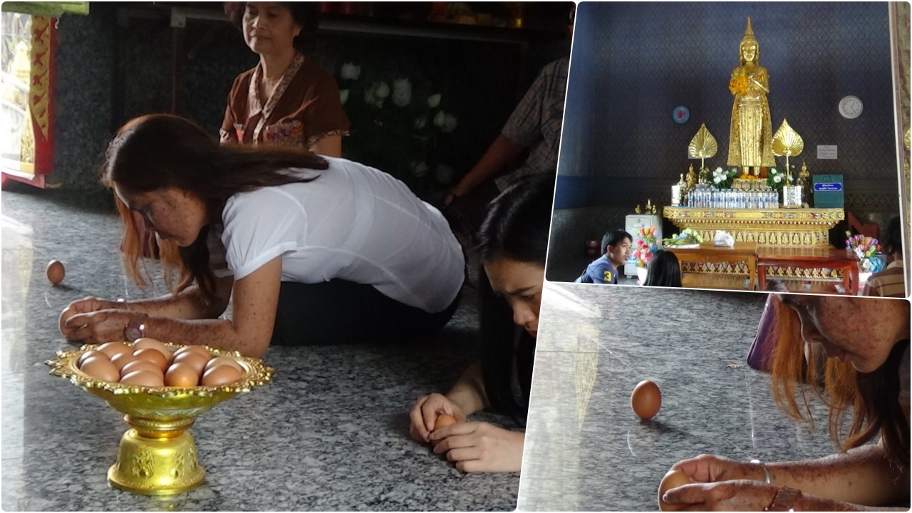 "ตั้งไข่ไม่ล้ม สมหวังดั่งคำขอ" ประชาชนที่มีความเชื่อ ศรัทธา พากันบนบานศาลกล่าว ณ วัดถนนสุทธาราม (หลวงพ่อรำพึง) จ.อ่างทอง ตามคำบอกเล่า หากใครตั้งไข่แล้วไม่ล้ม จะสมหวังทุกราย