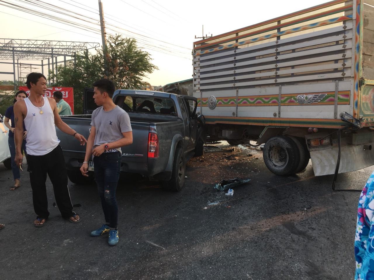 ที่เกิดเหตุพบรถยนต์กระบะดัดแปลงเป็นสองแถว หมายเลขทะเบียน 10-7389 นครราชสีมา เฉี่ยวชนกับรถจักรยานยนต์ ยี่ห้อฮอนด้ารุ่นเวฟ หมายเลขทะเบียน 1 กจ 4774 พระนครศรีอยุธยา ใกล้กันยังพบรถยนต์บรรทุก 6 ล้อ ยี่ห้อฮีโน่ หมายเลขทะเบียน 85 - 453 นนทบุรี มีนายสมัย ทรัพย์แก้ว อายุ 50 ปี เป็นคนขับ ชนกับรถยนต์กระบะดัดแปลงสองแถวทะเบียน บพ 648 พระนครศรีอยุธยา มีผู้เสียชีวิตในที่เกิดเหตุ 2 ราย