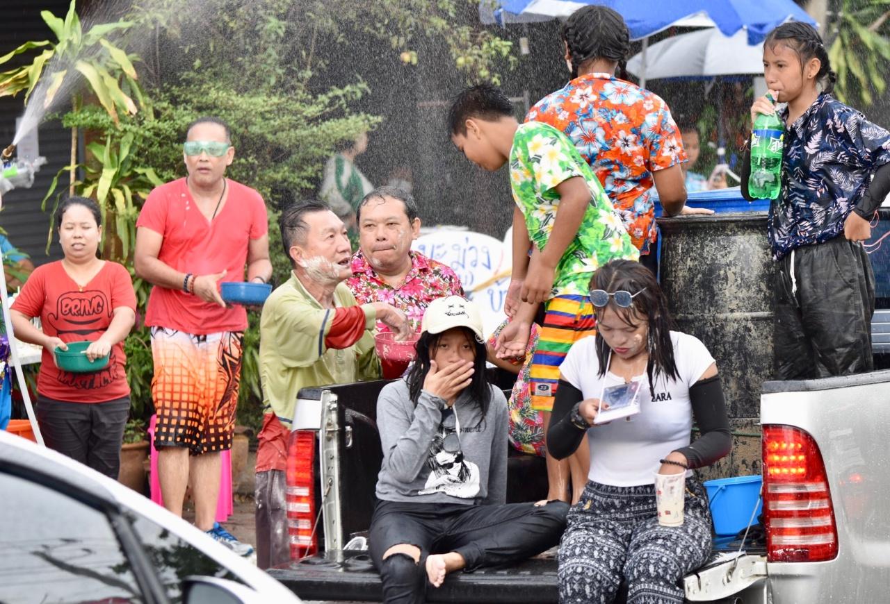 โดยเจ้าหน้าที่ได้กำหนดพื้นที่โซนนิ่งในการเล่นสาดน้ำไว้ บริเวณถนนข้าวเปลือก หรือถนนแม่น้ำแคว ที่มีนักท่องเที่ยวจำนวนมาก ทั้งนักท่องเที่ยวทั้งชาวไทยและชาวต่างชาติ กว่า 10,000 คน เข้ามาร่วมเล่นสงกรานต์ ส่งผลให้การจราจรติดขัดอย่างหนัก