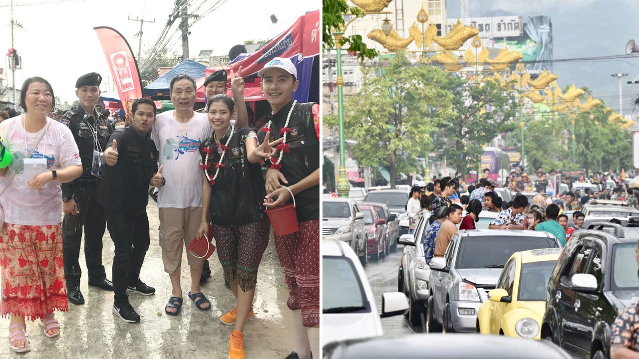 ชาวกาญจนบุรีกว่าหมื่นคน ร่วมนักท่องเที่ยวจีน 2,500 คน เล่นสาดน้ำสงกรานต์ ที่ถนนข้าวเปลือก ...
