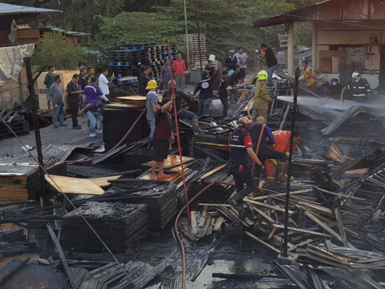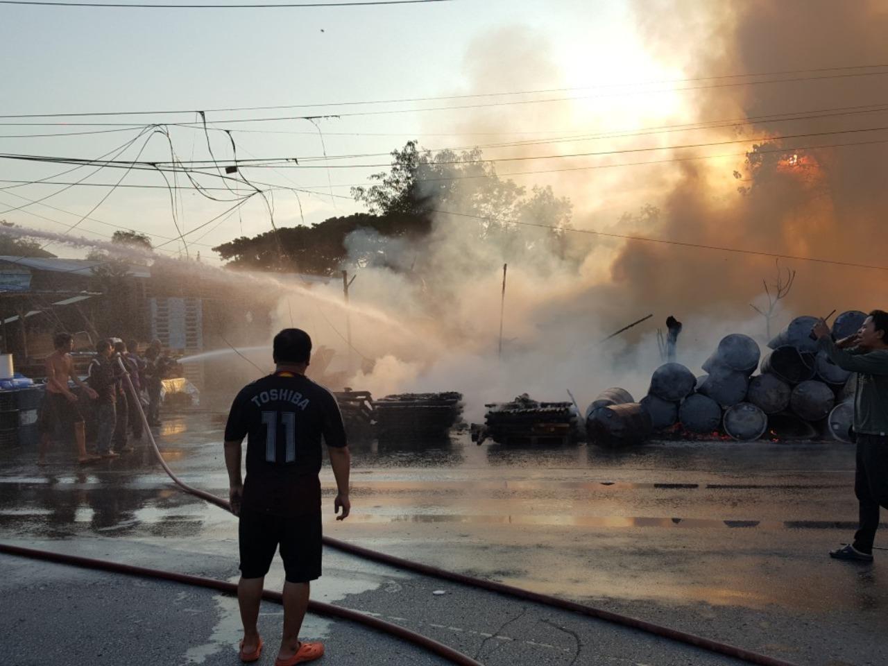 ในที่เกิดเหตุ พบเปลวเพลิงกำลังลุกไหม้บริเวณหน้าร้านดังกล่าวที่วางถังน้ำมันเปล่าขนาด 200 ลิตรทั้งแบบถังเหล็กและพลาสติก รวมทั้งกองไม้พาเลท จำนวนมาก ซึ่งเป็นเชื้อเพลิงอย่างดี ทำให้ไฟลุกโหมอย่างรวดเร็ว เจ้าหน้าที่ต้องระดมรถดับเพลิงจากหลายๆแห่งรวม 13 คัน มาช่วยกันฉีดน้ำสกัดเพลิง เพื่อไม่ให้ลุกลามไปติดกับร้านค้าไม้ที่อยู่ติดกันกันโดยเจ้าหน้าที่ใช้เวลาประมาณร่วม 1 ชั่วโมง จึงสามารถควบคุมเพลิงไว้ได้ในวงจำกัด