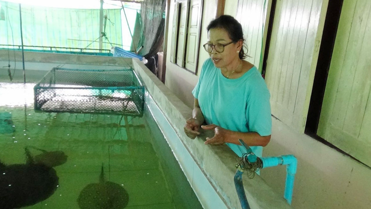 จากการเป็นปลาพันธุ์สวยงามนี้เอง นางฉวี เมฆย้อย อายุ 59 ปี บ้านเลขที่ 19/1 หมู่ที่ 5 ต.โผงเผง จึงเป็นผู้หนึ่งที่ลงทุนเงิน 1 แสนบาท สร้างบ่อเลี้ยงปลากระเบนสวยงามชนิดนี้บริเวณพื้นที่ข้างบ้าน