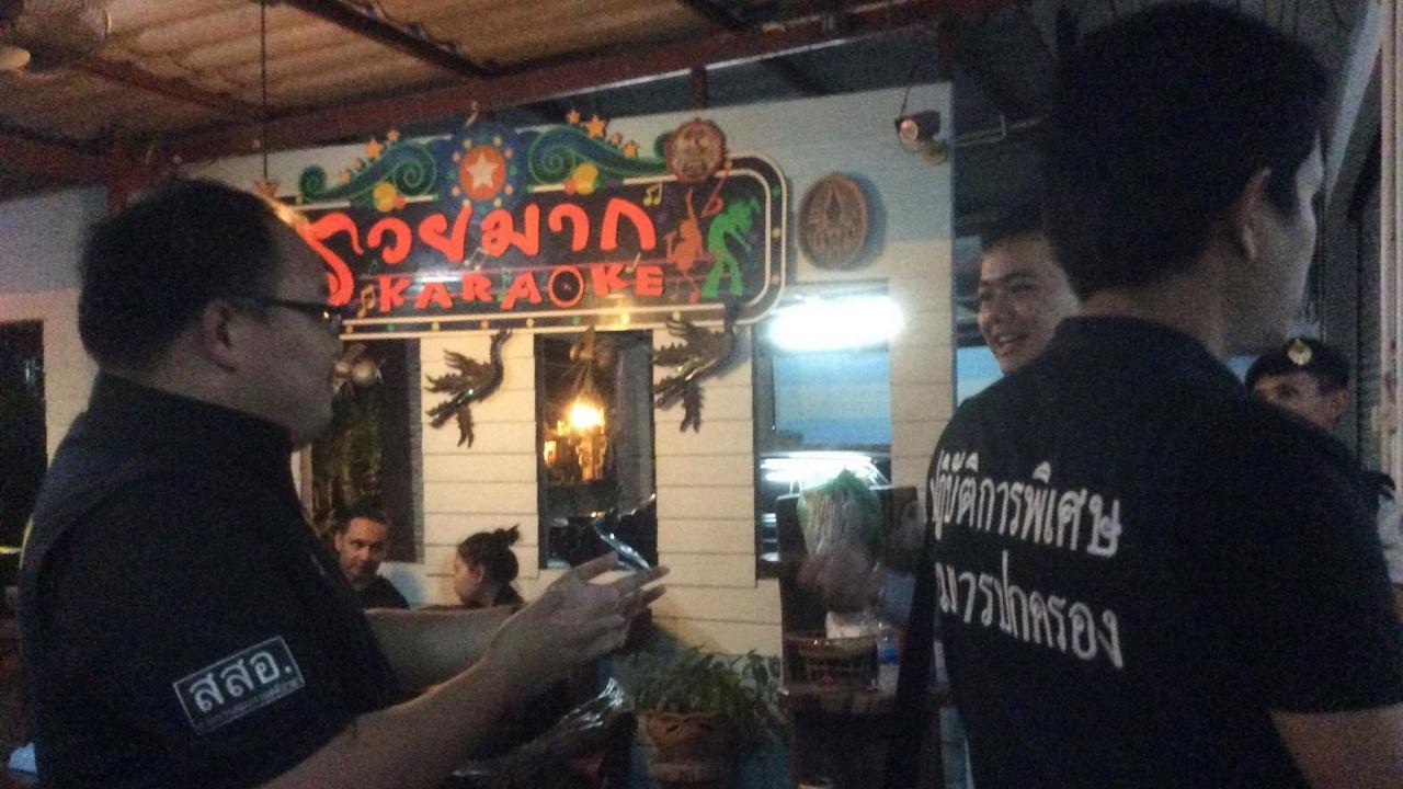 จากการตรวจสอบร้านรวยมากคาราโอเกะ พบหญิงต่างด้าวจำนวน 6 คน นั่งดริ๊งก์ให้บริการลูกค้าอยู่ภายในร้าน จากการสอบถามหญิงต่างด้าวรายหนึ่งรับว่าตนอายุ 17 ปี โดยเจ้าของร้านเป็นผู้เก็บหนังสือเดินทางเอาไว้ทั้งหมด และตรวจสอบไม่พบว่ามีใบอนุญาตตั้งสถานบริการแต่อย่างใด เบื้องต้นจึงจับกุมเจ้าของร้าน จำนวน 2 คน แจ้งข้อหาว่า ร่วมกันตั้งสถานบริการ ตาม ม.3(4)(ก) และ (ข) โดยไม่ได้รับอนุญาต