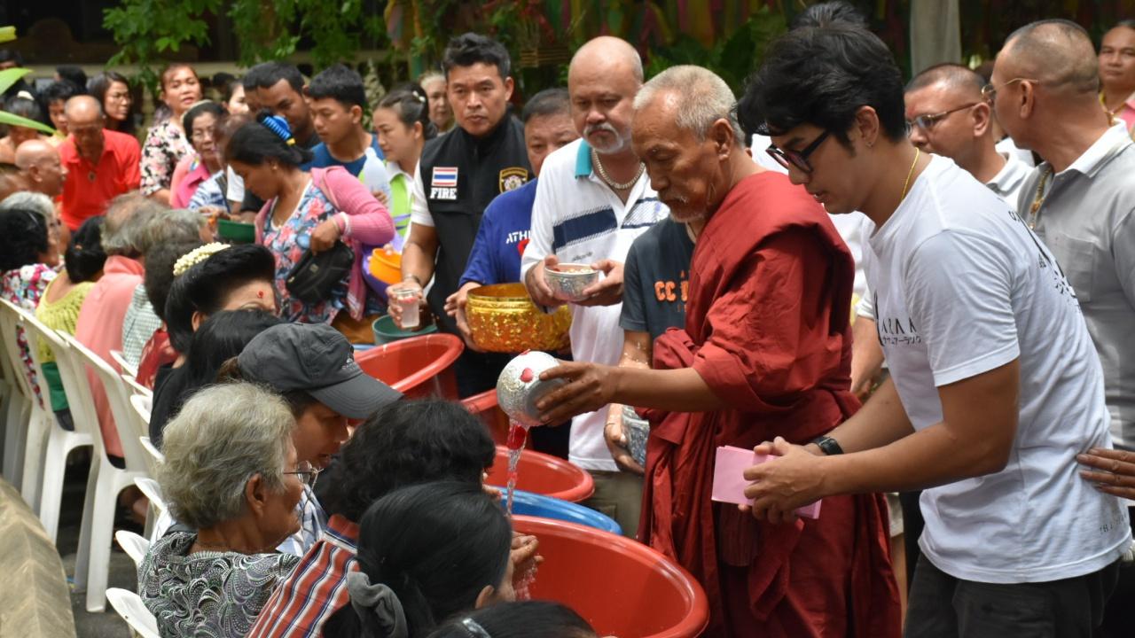 หลังเสร็จสิ้นพิธี ได้ประกอบพิธีสรงน้ำพระประจำปี โดยมีพระสงฆ์ 108 รูป และผู้สูงอายุอีกกว่า 70 คน ที่มีอายุเกินกว่า 75 ปี ที่ได้รับการคัดเลือกมาให้ประชาชนรดน้ำดำหัวและขอพร หลังเสร็จพิธีเป็นพิธีสรงน้ำอาจารย์แป๊ะ ซึ่ง 1 ปี อาจารย์แป๊ะจะสรงน้ำครั้งเดียว ทำให้สาธุชนหลั่งไหลมากันมากขึ้น
