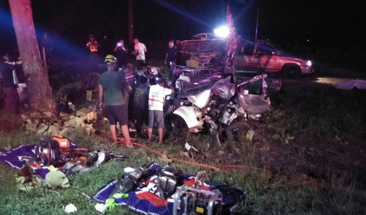 หนุ่มสาวขับรถไปขายมะม่วงยามวิกาล พุ่งชนต้นสัก ที่ อ.หันคา ดับสลดทั้งคู่ มะม่วงหลายพันลูกกระจายเกลื่อน คาดคนขับหลับใน แม่สุดเสียใจ ห้ามลูกแล้ว.. ให้รอเช้าก่อน
