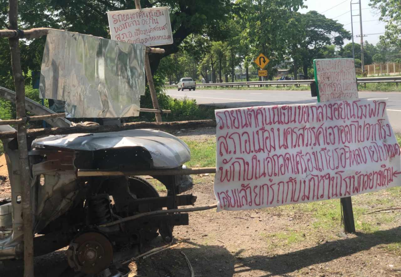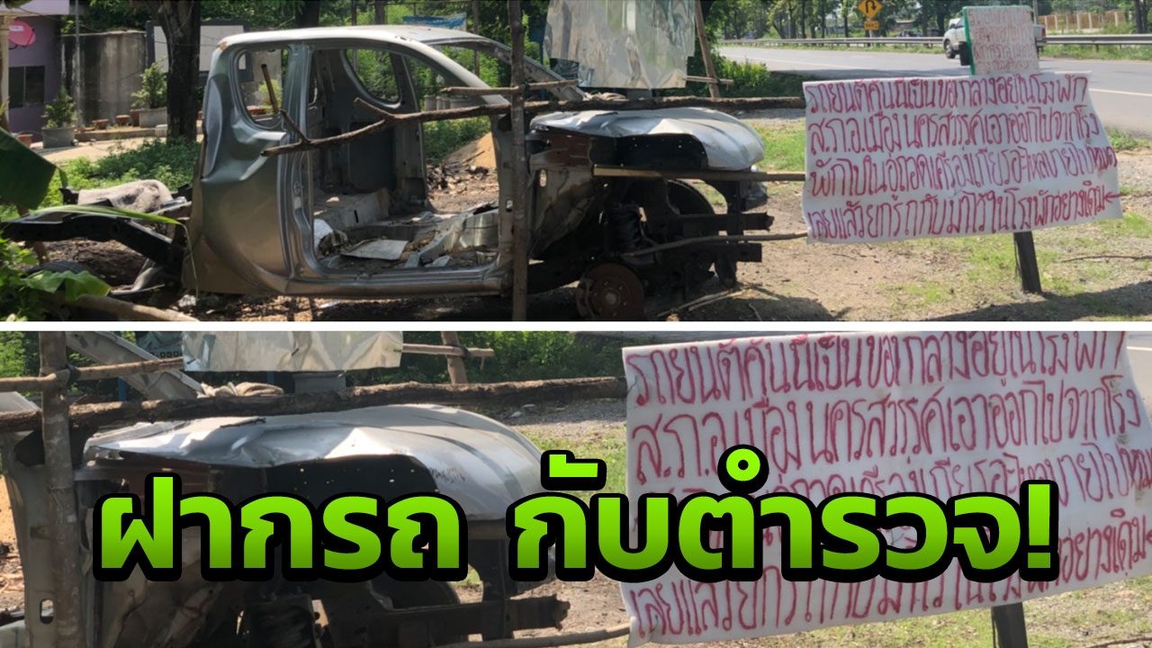 เมื่อไปถึงพบซากรถกระบะที่เหลือแต่โครงเหล็กไม่มีเครื่องยนต์ด้านในหรือกระปุกเกียร์ พร้อมติดป้ายร้องเรียนด้วยข้อความว่า รถยนต์คันนี้เป็นของกลางอยู่ที่ สภ.เมืองนครสวรรค์ หายไปจากโรงพักเครื่องกับเกียร์หายไปหมด แต่เมื่อสอบถามตำรวจกลับเงียบหาย ซึ่งเป็นป้ายประท้วงขอความเป็นธรรมของนายสมพงษ์ และนางอำนวยมุกต์ดา ชำนาญไพร สองสามีภรรยาที่ได้ช่วยกันเขียนติดไว้บริเวณหน้าบ้านพักหมู่ 5 ตำบลหนองกรด อำเภอเมือง จังหวัดนครสวรรค์