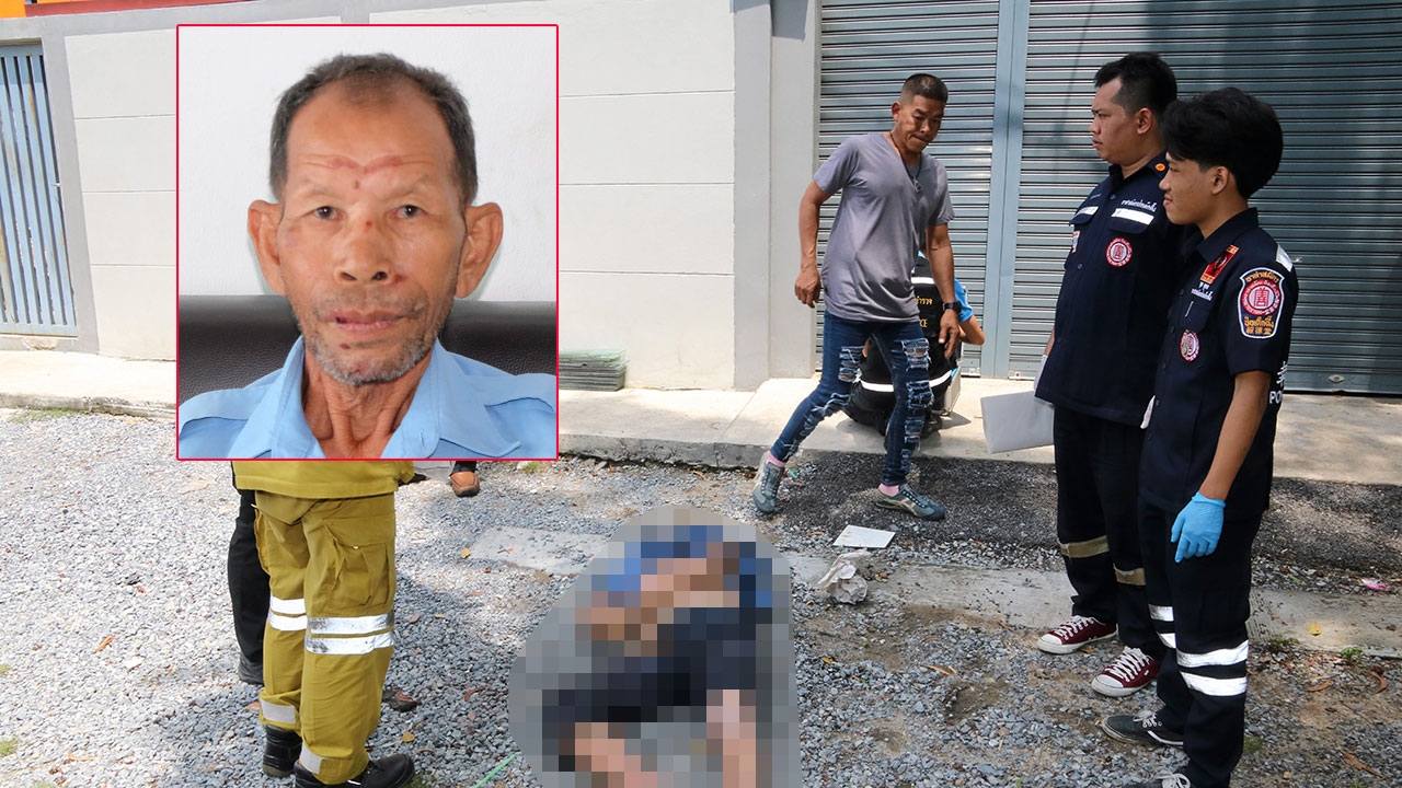 เจ้าหน้าที่ตรวจสอบศพนายสมเพชร เจริญสุข อาชีพเก็บของเก่า หลังถูกนายสมาน ค้าคุ้ม (ภาพเล็ก) อาชีพขับรถ แท็กซี่ เพื่อนซี้ร่วมวงเหล้า ใช้ไม้ตีหัวจนเสียชีวิต ภายในซอยลำลูกกา 25 หมู่ 18 ต.คูคต อ.ลำลูกกา จ.ปทุมธานี สาเหตุ มีปากเสียง ในวงเหล้า.