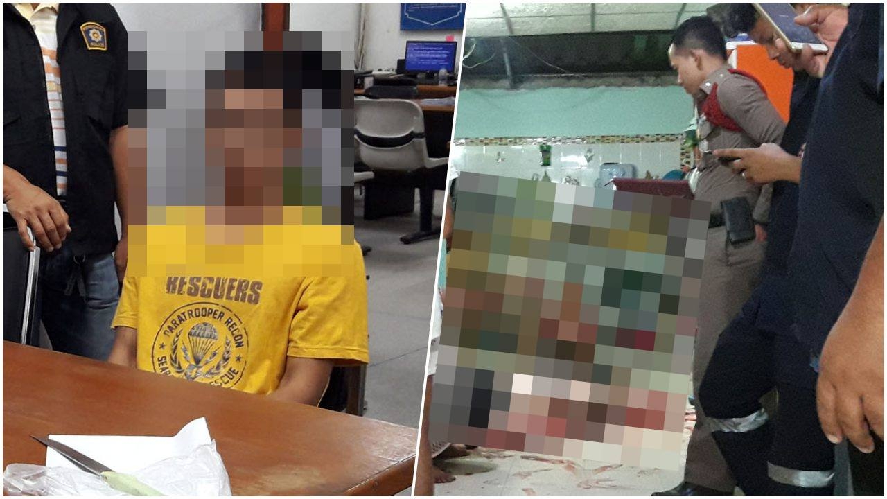 จากนั้นพ่อตาได้เดินมาตบหน้าตนและพยายามจะเข้าทำร้าย แต่ภรรยาตนและคนในบ้านได้มาห้ามปรามกันไป แต่พ่อตายังยืนด่าทอด้วยคำหยาบคายหลายครั้ง ตนทนไม่ไหวจึงคว้ามีดวิ่งเข้าไปแทงข้างหลังของผู้ตายจนเลือดพุ่งก่อนที่จะสิ้นใจล้มลงไปนอนกองกับพื้นต่อหน้าภรรยาตนและคนในบ้าน ตนจึงรีบถือมีดเดินออกไปนอกบ้าน ก่อนที่จะเรียกวินจักรยานยนต์ให้ไปส่งที่โรงพักพร้อมมอบตัวกับตำรวจ