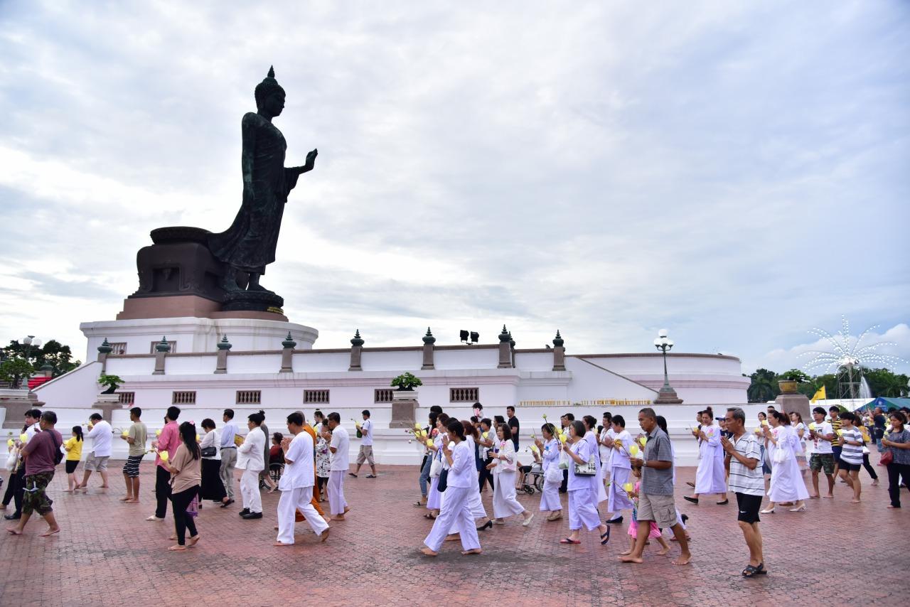 สมเด็จพระเจ้าอยู่หัว ทรงพระกรุณาโปรดเกล้าฯ ให้องคมนตรี เป็นผู้แทนพระองค์ ในการบำเพ็ญพระราชกุศล เนื่องในงานพิธีวันวิสาขบูชา ที่พุทธมณฑล โดยมีประชาชนร่วมเวียนเทียนกันเป็นจำนวนมาก...