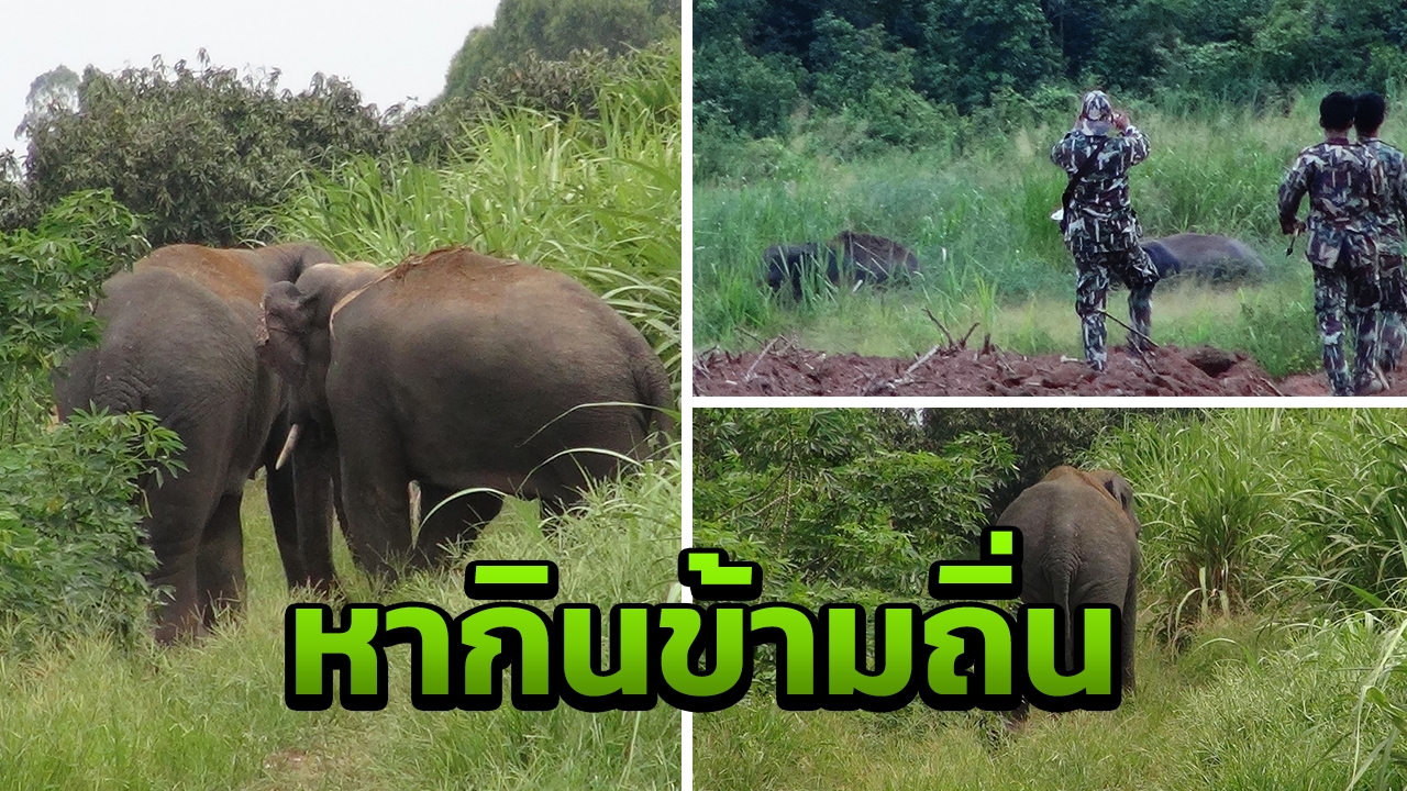 หิวโซ!! 2 ช้างป่าอ่างฤาไน เดินหาของกินข้ามถิ่นมาถึงบ้านหนองหญ้าปล้อง บ้านหนองแสง และบ้านวังทะลุ จ.ปราจีนบุรี จนท.ป่าไม้ รีบผลักดันให้ออกจากป่าอ้อย เพื่อกลับไปยังในที่อาศัยเดิม...