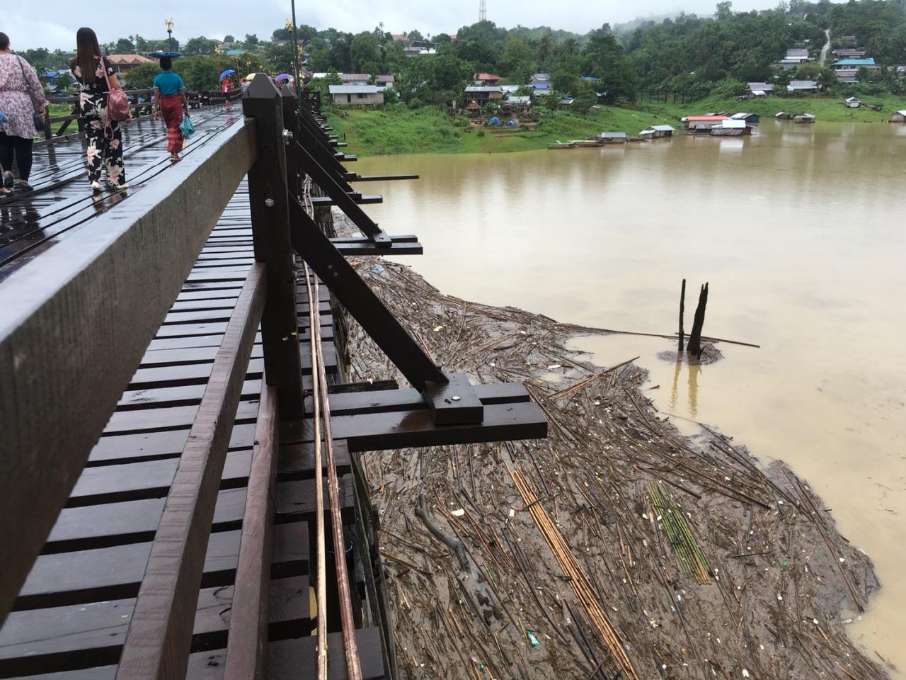 จากการที่มีฝนตกในพื้นที่ อ.สังขละบุรี จ.กาญจนบุรี ติดต่อกันหลายวัน ทำให้น้ำป่าในแม่น้ำซองกาเลีย มีระดับน้ำสูงขึ้น และกระแสน้ำไหลบ่ามีความแรง ทำให้มีเศษขยะและซากไม้จำนวนมากถูกพัดมาติดที่บริเวณเสาตอม่อ สะพานไม้อุตตมานุสรณ์ จำนวนมาก ซึ่งชาวบ้านในพื้นที่เกรงว่าหากมีจำนวนมากขึ้น จะส่งผลต่อความมั่นคงแข็งแรงของสะพานได้