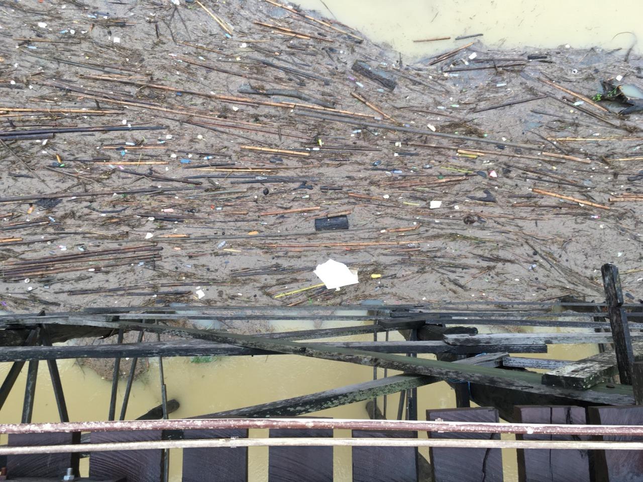 จากการสอบถาม ชาวบ้านเล่าว่า หลังจากที่มีพายุฤดูฝนเข้ามาในพื้นที่ ทำให้ฝนตกหนักติดต่อกัน 12 วันโดยต่อเนื่อง ทำให้แม่น้ำทั้งสามสาย บีคลี่ รันตี และซองกาเลีย ไหลมารวมกันเป็นแม่น้ำสามประสบ ปริมาณน้ำทั้ง 3 สายจำนวนมากได้ไหลมารวมกัน ทำให้น้ำในแม่น้ำเพิ่มขึ้นอย่างรวดเร็ว ทั้งน้ำป่าที่ไหลมา มีสีขุ่นแดง พัดพาเศษขยะ เศษไม้ไผ่ ไม้ท่อน รวมทั้งซากสัตว์จำนวนมาก มาติดที่สะพานไม้จำนวนมาก