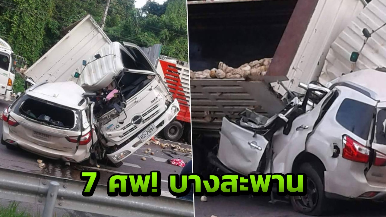 เกิดอุบัติเหตุรถบรรทุก 6 ล้อ เสียหลักพุ่งข้ามเลนประสานงาอีซูซุ มิว เอ็กซ์อย่างจัง บนถนนเพชรเกษม ขาเข้ากทม. ช่วง อ.บางสะพาน จ.ประจวบคีรีขันธ์ ส่งผลให้มีผู้เสียชีวิต 7 ราย
