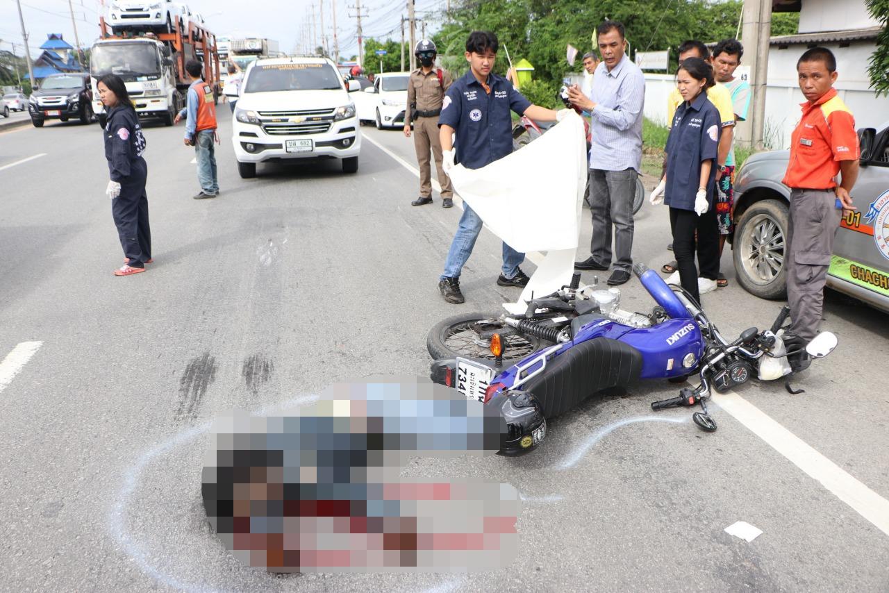 สาว 41 ชะตาขาด ขี่รถจักรยานยนต์หลบรถกระบะที่จะเลี้ยวเข้าปั๊ม ทำให้ไปเฉี่ยวชนรถบรรทุกหกล้อล้ม ก่อนจะถูกล้อหลังเหยียบร่างซ้ำ เสียชีวิตคาถนนสิริโสธร ขาเข้า จ.ฉะเชิงเทรา...