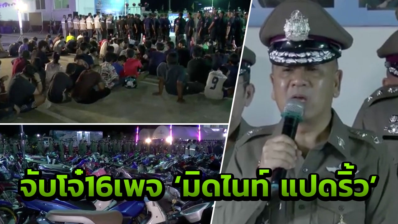ตำรวจแปดริ้ววางแผนปิดเมือง ระดมกำลังรวบเด็กแว้นกว่ากว่าร้อยชีวิต ยึดจยย. 120 คัน ท่อไม่ได้มาตฐานดัดแปลงตามร้านแต่งรถจำนวนมาก พร้อมรวบตัวแอดมินเพจเฟซบุ๊ก 'มิดไนท์ แปดริ้ว'