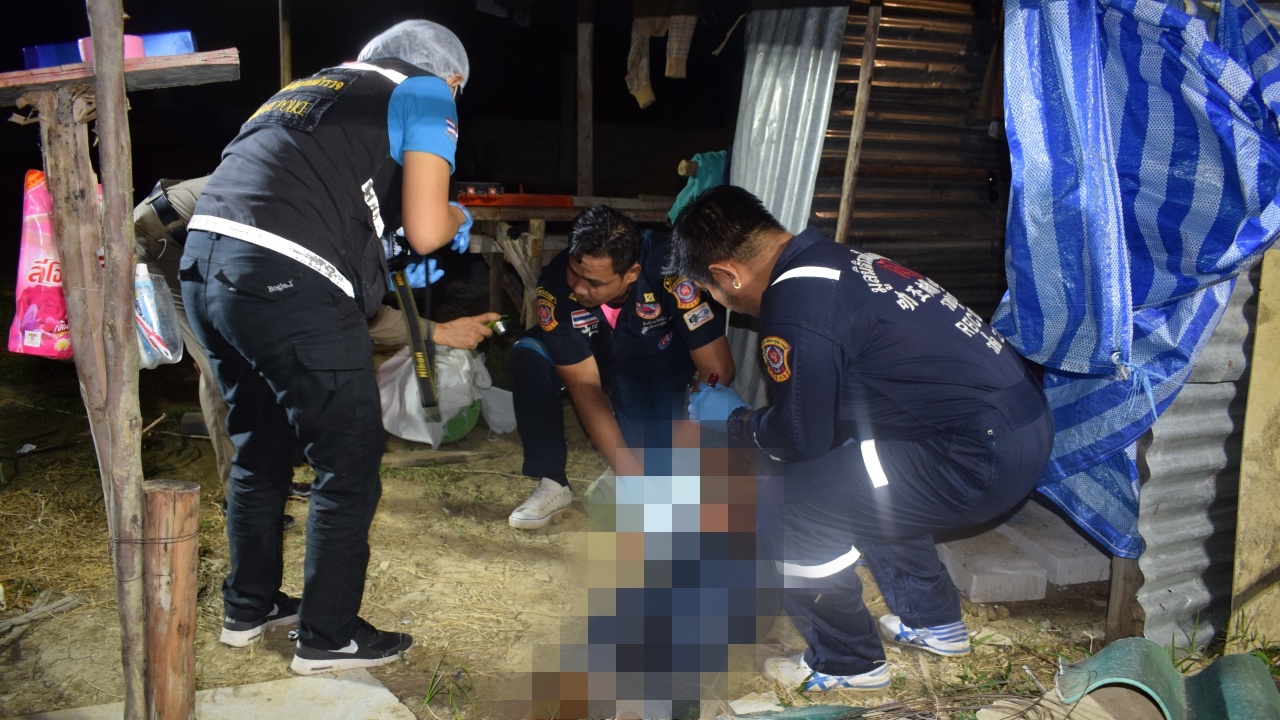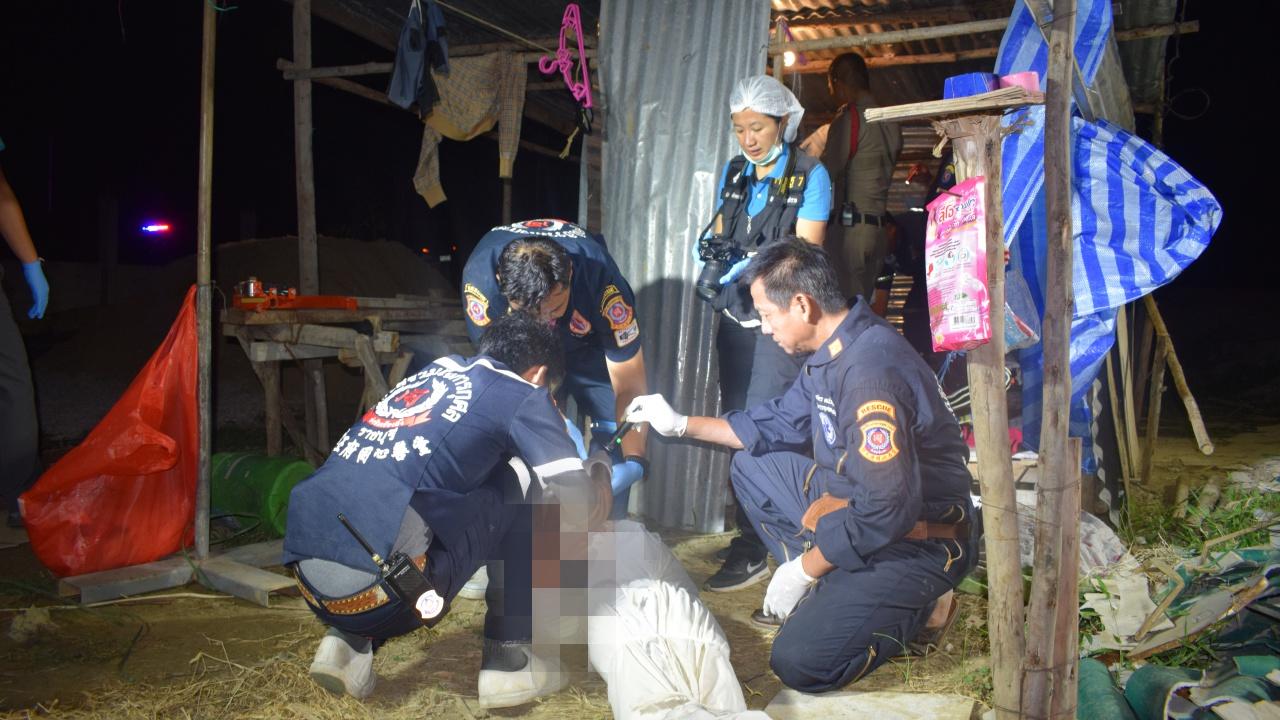 ที่เกิดเหตุ บริเวณแคมป์บ้านพักคนงาน พบศพนายนะ เล็บ อายุ 29 ปี สัญชาติกัมพูชา สภาพถูกอาวุธมีดแทงบริเวณชายโครงขวา ไส้ไหลทะลักนอนเสียชีวิตหน้าเพิงพัก สอบสวน นายเวือน งอน เพื่อนผู้ตายให้การว่า ช่วงหัวค่ำหลังเลิกงาน ได้นั่งดื่มกินกับผู้ตายและเพื่อนอีกคนชื่อนายทา ขณะตนลุกไปอาบน้ำเมื่อเดินกลับมา พบเห็นผู้ตายนอนแน่นิ่งมีแผลถูกแทงจนเสียชีวิต จึงรีบตามคนมาช่วย ส่วนนายทา เพื่อนอีกคนหายตัวไป เบื้องต้นเจ้าหน้าที่คาดว่า ขณะผู้ตายดื่มกินกับเพื่อนจนเมามาย เกิดมีปากเสียงทะเลาะวิวาทก่อนถูกเพื่อนแทงจนเสียชีวิต หลังเกิดเหตุจึงลงบันทึกประจำวันไว้เป็นหลักฐาน เพื่อสืบสวนหาตัวคนร้ายมาดำเนินคดีตามกฎหมายต่อไป.
