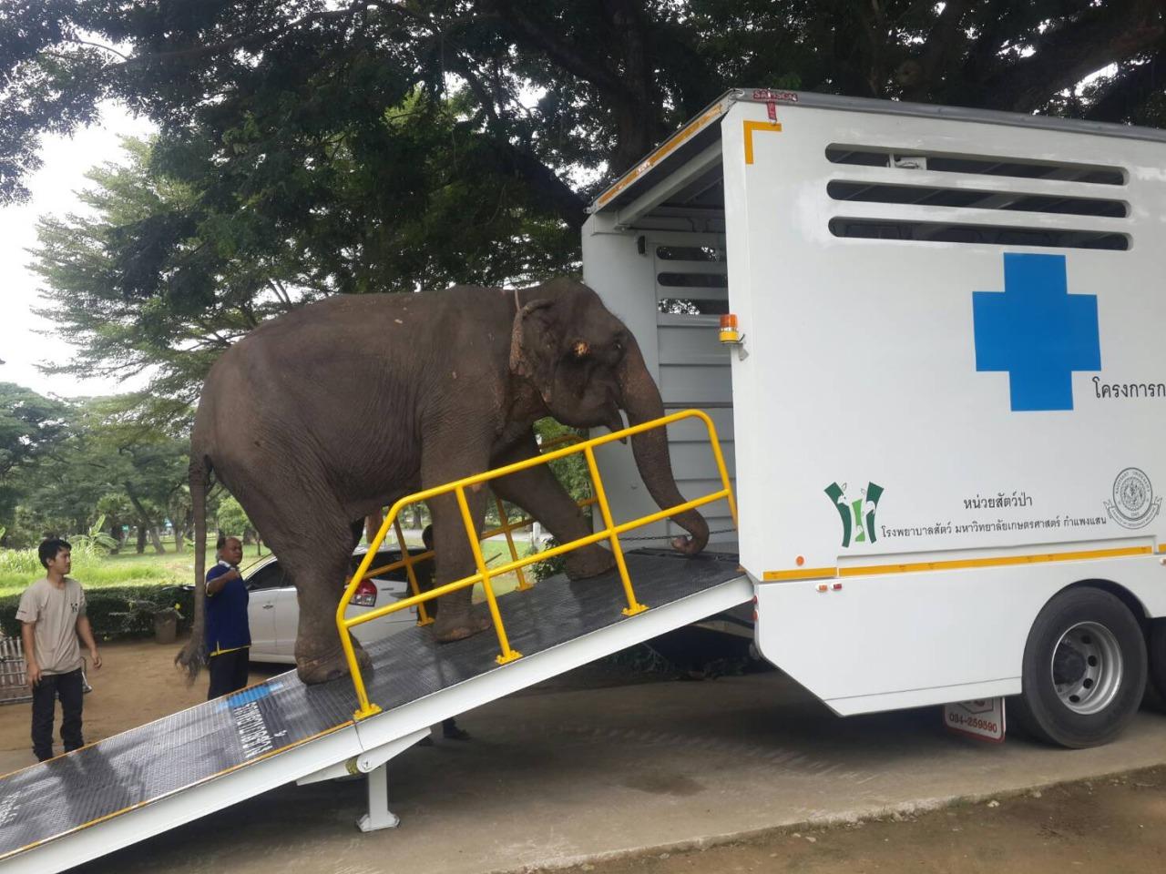 เมื่อวันที่ 8 ส.ค.2561 นสพ.ดร.นิกร ทองทิพย์ อาจารย์คณะสัตวแพทย์ศาสตร์ พร้อมด้วย สพญ.สุภาเพ็ญ ศรีพิบูลย์ แพทย์ประจำคลินิกสุขภาพช้างและสัตว์ป่า และทีมคณะสัตวแพทย์ มหาวิทยาลัยเกษตรศาสตร์ วิทยาเขตกำแพงแสน จังหวัดนครปฐม ได้นำรถพยาบาลช้าง ขนาด 12 ล้อ พร้อมอุปกรณ์กู้ชีพ ออกเดินทางจาก คลินิกสุขภาพช้างและสัตว์ป่า จังหวัดนครปฐม เพื่อไปรับช้างป่วย ที่ จ.กาญจนบุรี