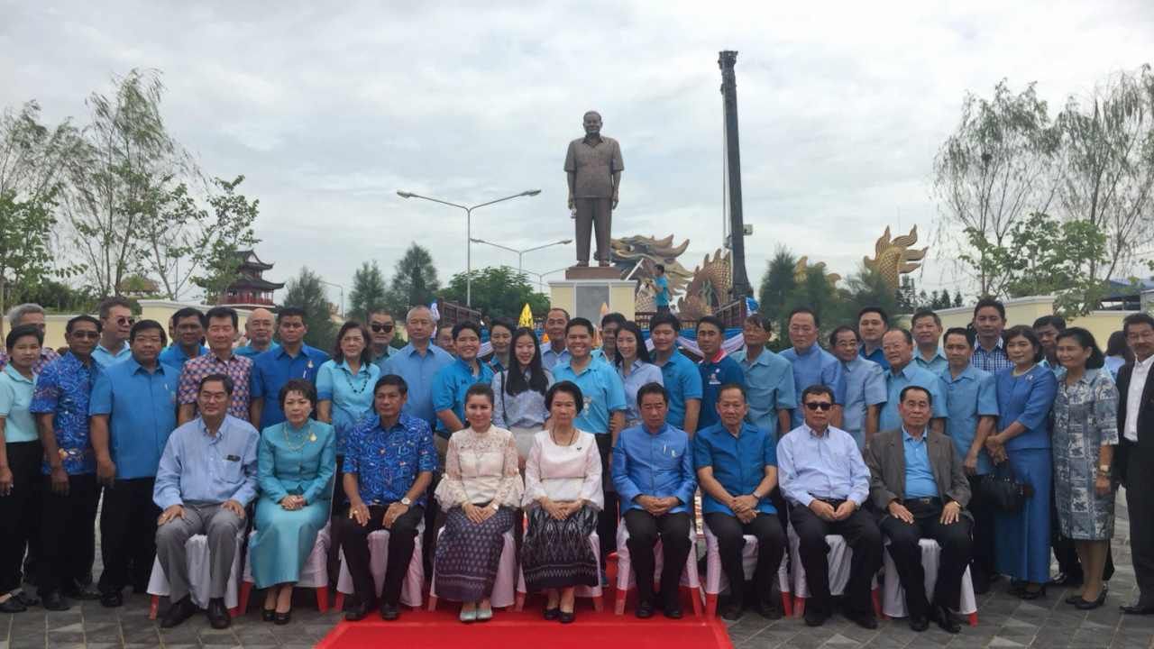 ครอบครัวศิลปอาชา นำโดยคุณหญิงแจ่มใส ร่วมพิธีประดิษฐานอนุสาวรีย์ นายบรรหาร ศิลปอาชา อดีตนายกรัฐมนตรี ณ ลานมังกรสวรรค์ ศาลเจ้าพ่อหลักเมืองสุพรรณบุรี
