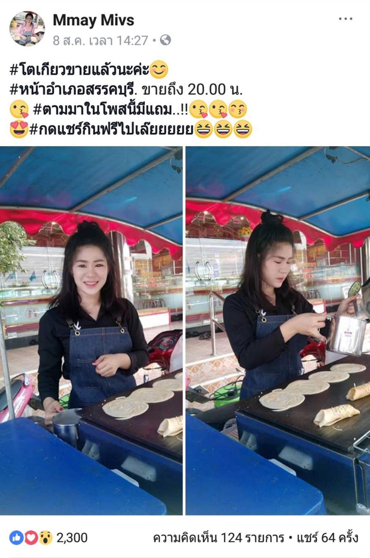 ผู้สื่อข่าวรายงานว่า จากกรณีที่มีการแชร์ภาพแม่ค้าหน้าตาดีขายขนมโตเกียวในเฟซบุ๊กที่ชื่อว่า Mmay Mivs (โตเกียว) แถมการันตีว่าขนมโตเกียวอร่อยอีกด้วย ทำให้บรรดาเพจดังต่างๆ และชาวโซเชียลทั้งชายและหญิง แชร์กันอย่างต่อเนื่อง ขณะนี้จำนวนแชร์ต่อโพสต์ ไม่ต่ำกว่า 2 พันครั้ง เพราะความสวยที่จิตใจ ไม่ต้องแต่งตัวโป๊ ใส่สายเดี่ยวเอวลอย หรือถอดเสื้อผ้าเหมือนคนอื่นๆ ก็สวยได้ ทั้งยังประกอบอาชีพสุจริตหาเลี้ยงครอบครัวอีกด้วย