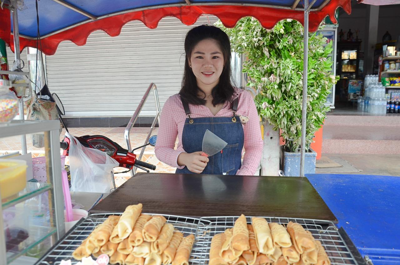 น.ส.ดวงนภา ใจแสน หรือ เมย์ เปิดเผยว่า ตนเรียนจบระดับชั้น ปวช. หลังเรียนจบมาอยู่ช่วยแม่ที่ร้านเสริมสวยอยู่ระยะหนึ่ง จากนั้นอยากมีอาชีพเป็นของตัวเอง จึงหาความรู้ทางอินเทอร์เน็ต และได้เรียนรู้เรื่องการทำขนมโตเกียว ลองผิดลองถูกมาเรื่อยๆ ทำช่วงแรกๆ ขายไม่ค่อยดี เพราะแป้งแข็งมาก ไม่อร่อย ต้องมาปรับปรุงสูตรแป้งด้วยตนเองจนอร่อย และขายดีมาจนถึงปัจจุบัน เป็นเวลา 3 ปีแล้ว เปิดขายทุกวัน ตั้งแต่เวลา 12.00-20.00 น. รายได้เฉลี่ยประมาณ 2,000-3,000 บาท ยังไม่ได้หักต้นทุน โดยภายหลังจากมีการแชร์ภาพของตนเองในเพจดังต่างๆ ทำให้ยอดขายเพิ่มขึ้น มีคนขับรถมาซื้อจากต่างอำเภอและจังหวัดใกล้เคียง บอกว่าที่มาอุดหนุนเพราะอยากรู้เลยลองมาดูซิสวยจริงไหม แล้วก็กลับ