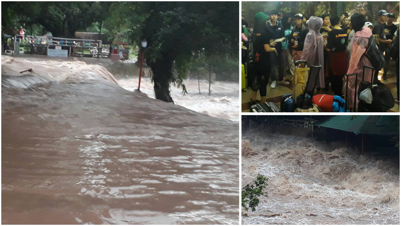 นักท่องเที่ยว 30 คน ติดน้ำป่า ในพื้นที่คลองมะเดื่อ จ.นครนายก ยังข้ามกลับมาไม่ได้ จนท.เร่งช่วย แต่ต้องรอน้ำลดลงก่อนจึงไปช่วยได้ ยังพอเบาใจ เพราะยังพอมีอาหาร เครื่องดื่มอยู่ ชีวิตได้ถึง 2 วัน