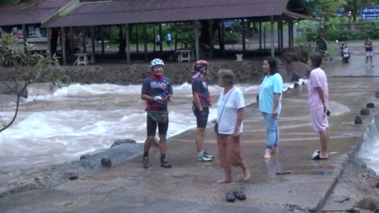 ด้าน น้ำตกนางรอง ระดับลดลง แต่ยังมีความรุนแรงของน้ำและน้ำยังมีสีแดงขุ่น ทางอุทยานประกาศห้ามนักท่องเที่ยวลงเล่นน้ำในช่วงนี้ ขณะที่ประชาชนเดินทางมาถ่ายรูปเก็บบรรยากาศ และรถจักรยานยนต์สามารถสัญจรผ่านไปมาได้