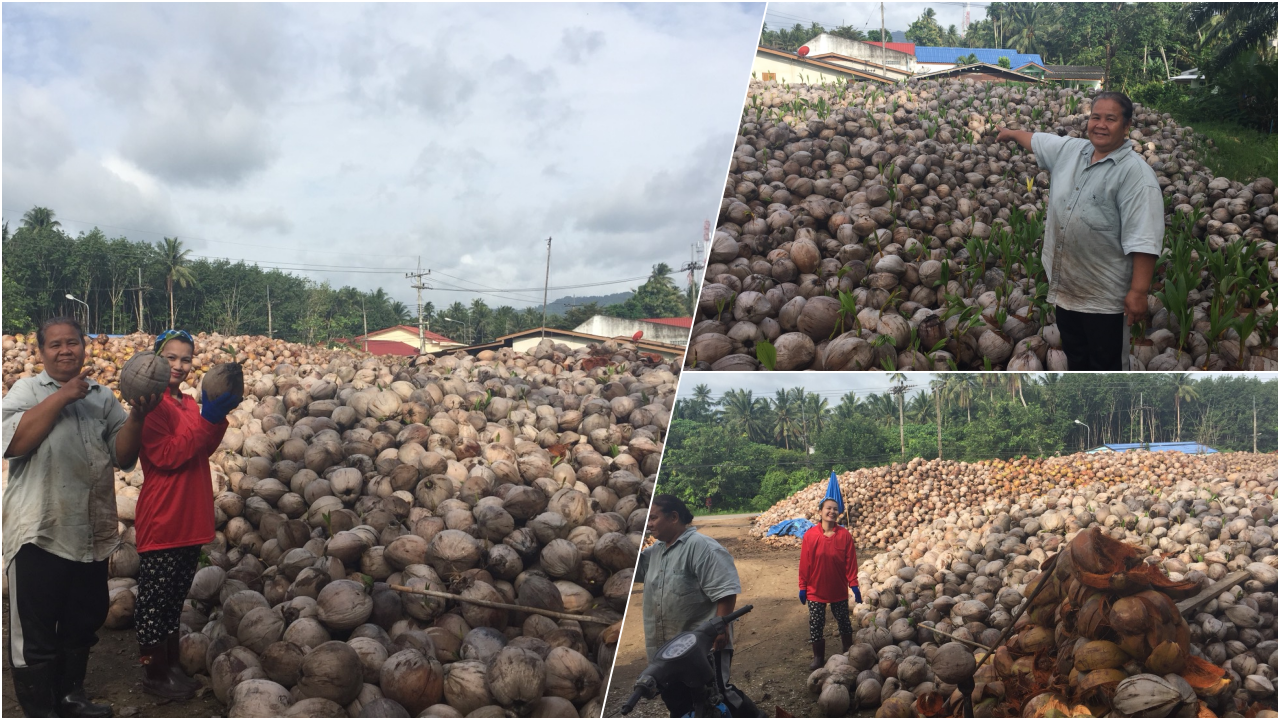 โดย นางมรตี เกิดพันธ์ กล่าวว่า ครอบครัวประกอบอาชีพรับซื้อมะพร้าวจากชาวสวนในพื้นที่ ที่ผ่านมารับซื้อมะพร้าวจากชาวสวนในราคา 8 บาท จนล่าสุดซื้อในราคาผลละ 4 บาท แต่ประสบปัญหาไม่สามารถขายมะพร้าวที่ซื้อจากชาวสวนได้ เนื่องจากไม่มีโรงงานรับซื้อ เงินลงทุนกว่า 2,000,000 บาท จมอยู่ในกองมะพร้าวกว่า 5 แสนลูก