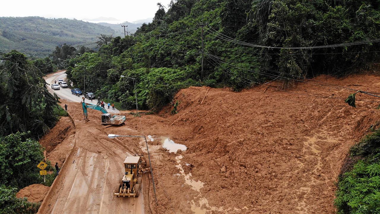 ด้าน จ.ระนอง นายจตุพจน์ ปิยัมปุตระ ผวจ.ระนอง เดินทางไปตรวจดูสถานการณ์บริเวณใกล้จุดชมวิวน้ำตกปุญญาบาล หมู่ 1 ต.บางนอน อ.เมืองระนอง หลังเกิดดินสไลด์ลงมาทับเส้นทางบ้านหินช้าง-ท่าเรือ-บ้านเขานางหงษ์ เมื่อช่วงเย็นวันที่ 17 ส.ค. จนต้องปิดเส้นทาง โดยนายจตุพจน์ กล่าวว่าประเมินสถานการณ์แล้วยังไม่สามารถเปิดใช้เส้นทางดังกล่าวได้ ขอให้ประชาชนเลี่ยงการใช้เส้นทางเพื่อความปลอดภัยจนกว่าสถานการณ์จะดีขึ้น