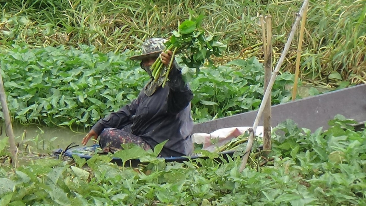 นางน้ำฝน คำโต อายุ 55 ปี ชาวบ้านริมคลอง พื้นที่หมู่ 1 ตำบลศาลาแดง กล่าวว่า ทางเทศบาลได้ทำการเก็บวัชพืชในลำคลองชลประทานออกไปพร้อมได้ทำการปลูกผักบุ้งเป็นจำนวนมากในคลองชลประทาน เพื่อแก้ปัญหาวัชพืชและผักตบชวาขึ้นปกคลุมในลำคลองหน้าบ้าน พร้อมให้ชาวบ้านดูแลวัชพืชตัดแต่งผักบุ้งพร้อมเก็บไปขายสร้างรายได้ ตนเองมีอายุมากแล้ว จะออกไปรับจ้างทำนาก็ไม่ไหว แต่ก็มีรายได้จากการเก็บผักบุ้งไปฝากหลานสาวขาย มีรายได้วันละ 200-300 บาท ในทุกวันตอนเช้าจะทำการลงเรือพายเรือในคลอง ตัดแต่งดูแลรักษา ตัดยอดผักบุ้งแล้วนำไปฝากหลานขาย มีรายได้ทุกวันไม่ต้องลงทุนอะไร ทำให้คลองสวยน้ำใสและมีรายได้อีกด้วย