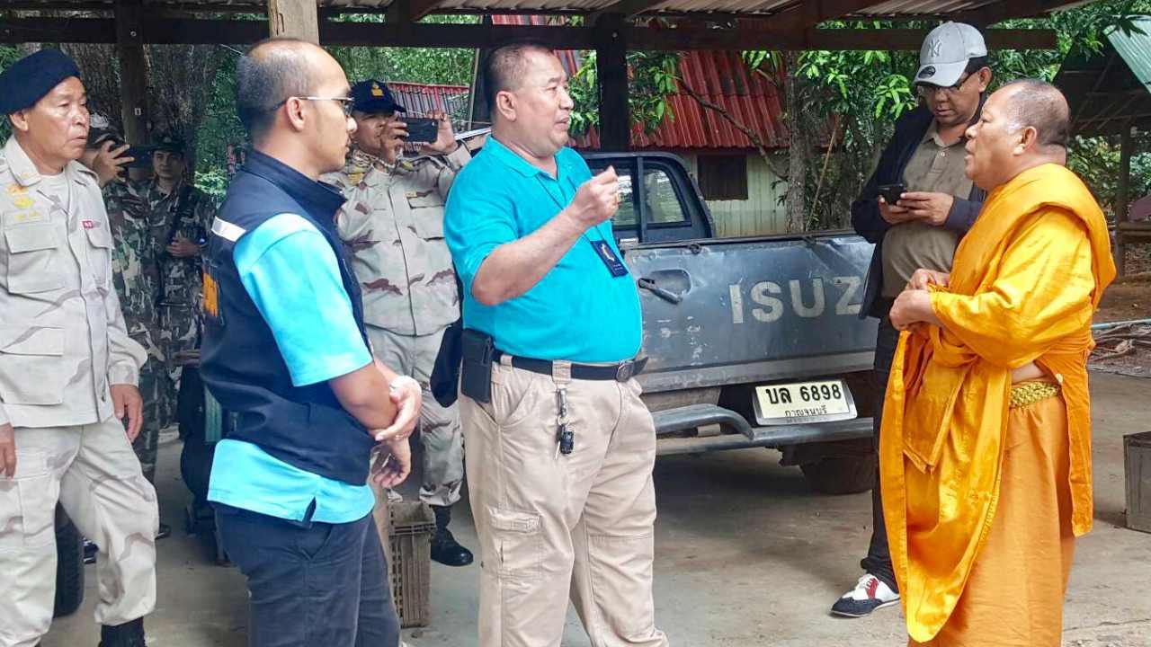 ต่อมา นายยงยุทธ สุโนภักดิ์ ป้องกันจังหวัดกาญจนบุรี พร้อม กำลังชุดเฉพาะร้อย อส.จ.กาญจนบุรีที่ 1 ประสานงาน พันเอก มนตรี ธนวรรณโอภาส เสธ.กกล.รส.มทบ.17 นายธนายุทธ พินิจมนตรี ปลัดอำเภอฝ่ายความมั่นคงอำเภอศรีสวัสดิ์ นายฐิติ โสมภีร์ หน.อุทยานเขื่อนศรีนครินทร์ ร่วมนำกำลัง อส. ทหาร รส.มทบ.17 (ศรีสวัสดิ์) เจ้าหน้าที่พิทักษ์ป่าห้วยแม่ละมุ่น ลงพื้นที่ วัดวังผาแดง หมู่ 5 ต.นาสวน อ.ศรีสวัสดิ์ จ.กาญจนบุรี เพื่อตรวจสอบเรื่องดังกล่าว