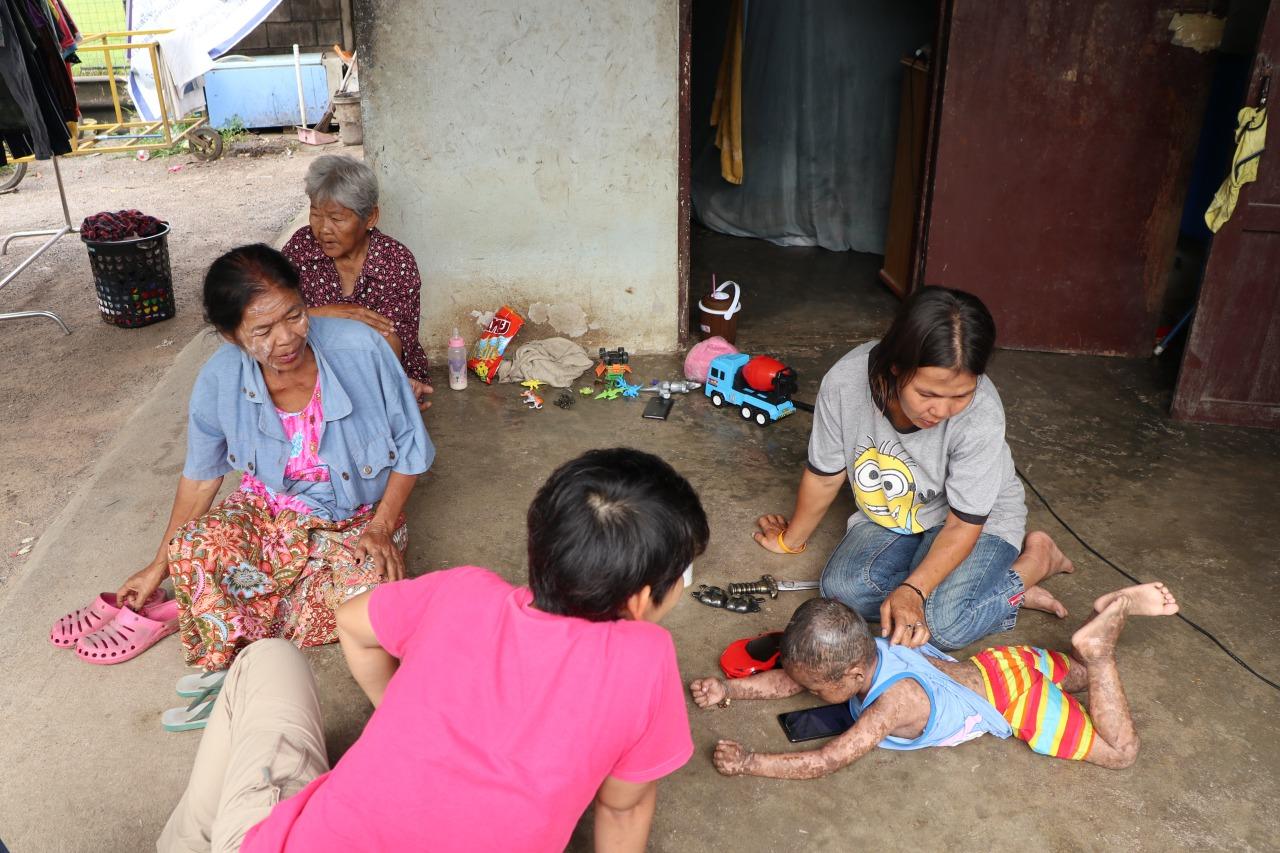 "ผิวของน้องจะแห้งและหยาบกร้าน ตกสะเก็ด บางแห่งเป็นแผล ต้องคอยทายาที่หมอให้และทาน้ำมันมะพร้าวเพื่อบรรเทาอาการแสบคัน ซึ่งบางครั้งน้องชอบใช้มือเกา และร้องไห้ด้วยความเจ็บปวดตลอดเวลา ตนรู้สึกสงสารลูกเป็นอย่างมาก ที่เกิดมาไม่เป็นปกติเหมือนเด็กคนอื่น ออกทำงานรับจ้างทั่วไปตั้งใจจะเลี้ยงน้องให้ดีที่สุด บางครั้งต้องหยุดงานเป็นเดือนเพื่ออยู่ดูแลน้อง ขาดรายได้ไม่มีเงินจุนเจือมาซื้อแพมเพิร์ส น้ำมันมะพร้าว และของใช้ที่จำเป็น บางทีชาวบ้านใกล้เคียงสงสารก็ยื่นมือเข้ามาช่วยบ้าง” แม่ของน้องพอร์ช กล่าวทั้งน้ำตา