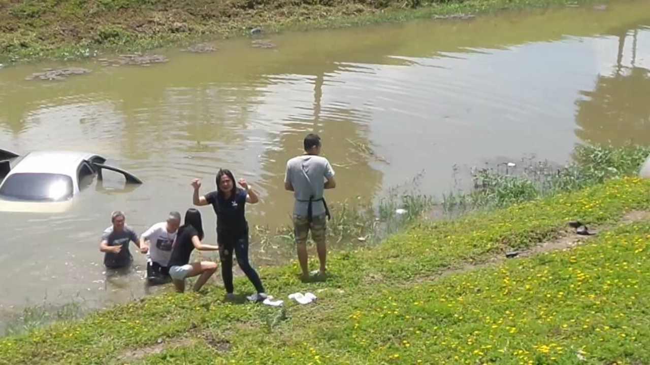 ผัวเมียทะเลาะกัน พอฝ่ายหญิงเผลอ ผัวแสบแอบเอาหินไปวางทับคันเร่งรถเก๋งที่เมียรับจำนำไว้ แล้วติดครื่องให้รถพุ่งลงคลองจมน้ำ