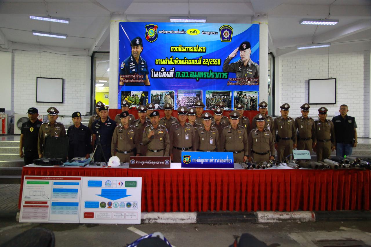 เมื่อเวลา 00.30 น. วันที่ 22 ก.ย.61 ที่หน้า บก.ภ.จว.สมุทรปราการ พล.ต.ต.สุรเชษฐ์ หักพาล รอง ผบช.ทท. หน.ชุดปฏิบัติการตามคำสั่ง ผบ.ตร. พร้อมด้วย พล.ต.ต.ธรรมนูญ ไตรทิพยพงศ์ ผบก.ภ.จว.สมุทรปราการ ร่วมกัน แถลงผลการปฏิบัติการของเจ้าหน้าที่ตำรวจจากกองบัญชาการตำรวจท่องเที่ยว,กองบัญชาการตำรวจปราบปรามยาเสพติด, กองบังคับการตำรวจภูธร จ.สมุทรปราการ,กองบังคับการ ตำรวจจราจร และกองบังคับการสายตรวจและปฏิบัติการพิเศษ ภายหลังจากได้สนธิกำลังร่วมกันปราบปรามการแข่งรถในทางสาธารณะในพื้นที่ จ.สมุทรปราการ โดยจับกุมผู้ต้องหาแอดมินเพจตามหมายซึ่งพฤติกรรมโพสต์ชักชวนให้กลุ่มวัยรุ่นออกมารวมตัวแข่งรถในทางสาธารณะบริเวณถนน 1 ราย และ ได้จับกุมตัวผู้ต้องหาตามหมายจับในความผิดฐาน "เป็นผู้สนับสนุนให้มีการแข่งขันรถในทางสาธารณะ" ดำเนินคดีตามกฎหมายหมายจับ 75 เพจ และถูกปิดไปแล้ว 91 เพจ ตรวจค้นร้านท่อเสีย 53 ร้าน พบการกระทำความผิด 13 ร้าน ยึดท่อไอเสียที่ไม่ได้มาตรฐานไว้ตรวจสอบจำนวน 49 รายการ