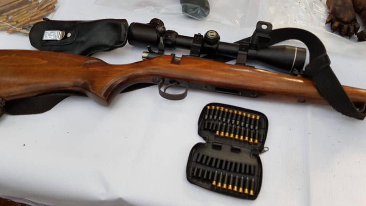 เมื่อวันที่ 7 ต.ค.2561 นายพนัชกร โพธิบัณฑิต หัวหน้าอุทยานแห่งชาติไทรโยค นำกำลังเจ้าหน้าที่อุทยานแห่งชาติไทรโยคเข้าทำการตรวจค้นคณะรถออฟโรด จำนวน6คัน ที่อยู่ในพื้นที่หน่วยพิทักษ์อุทยานแห่งชาติไทรโยค (เขาพลู) จากการตรวจค้นพบว่ามีกลุ่มบุคคลเดินทางร่วมมาในคณะจำนวน12คน โดยในรถคันที่ 5 เจ้าหน้าที่ตรวจพบอาวุธปืนไรเฟิล ติดกล้องและอุปกรณ์เก็บเสียง 1 กระบอก พร้อมเครื่องกระสุนปืนจำนวนหนึ่ง และยังพบอาวุธปืนพกสั้น จำนวน 2 กระบอก พร้อมเครื่องกระสุนปืนและซากสัตว์ป่า หมีขอ อุ้งตีน 4 ข้าง