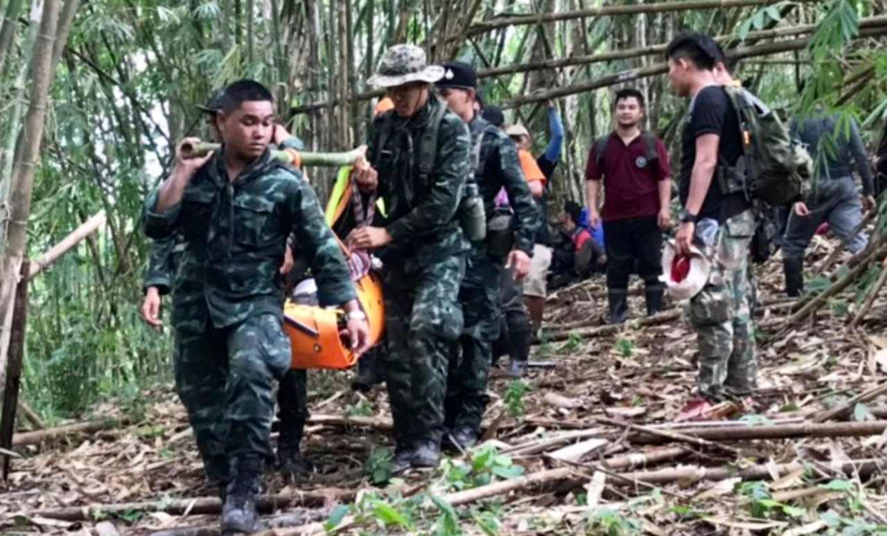 ช่วยสำเร็จ ฮ.ทบ.บินรับออกมาแล้ว 4 นักท่องเที่ยวพลัดตกหน้าผาอช.เขาแหลม อ.สังขละบุรี นำส่งรพ.อย่างปลอดภัย มีอาการสาหัส 1 คน ที่เหลือถูกสอบสวน เพราะลอบเข้าไปเดินป่าโดยไม่ได้รับอนุญาต