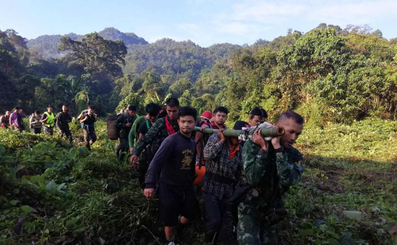 พล.ต.ฐกัด หลอดศิริ ผบ.พล.ร.9 เปิดเผยว่า หลังจากที่ได้ทราบข่าวได้ให้ ฉก.ลาดหญ้าที่เป็นหน่วยความมั่นคงดูแลพื้นที่ประสานงานหน่วยงานที่เกี่ยวข้องในพื้นที่วางแผนเพื่อช่วยเหลือ เนื่องด้วยสภาพพื้นที่เป็นป่าดิบภูเขาอยู่ในเขตทุ่งใหญ่นเรศวรร จัดกำลังส่งเจ้าหน้าที่ไปทางน้ำและทางเท้า ไปถึงที่เกิดเหตุพบผู้บาดเจ็บไม่สามารถนำออกมาได้ จึงให้ฮ.จาก กกล.สุรสีห์เข้ามา สนับสนุนการลำเลียงและส่งเสริมเบียงอาหารในปฏิบัติการครั้งนี้