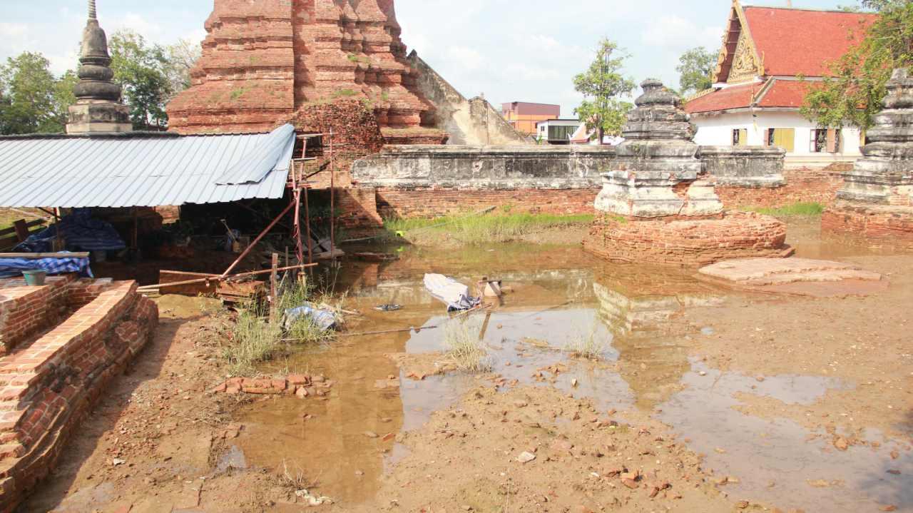 โดยทางกรมศิลปได้นำช่างเข้าทำการบูรณะมาตั้งแต่ปี พ.ศ. 2555 และจะแล้วเสร็จในปี พ.ศ.2562 ในบริเวณพื้นที่ทั้งหมดประมาณ 3-4 ไร่ มีการสำรวจออกแบบตามที่กรมศิลปากรกำหนดและจัดทำขึ้น ซึ่งตั้งแต่เมื่อเริ่มดำเนินการได้มีการปรับพื้นที่ขุดเจาะพื้นที่รอบบริเวณพระปรางค์ใหญ่ และรอบองค์เจดีย์น้อยใหญ่ความลึกประมาณ 1.5 เมตร กว้างประมาณ 1-2 เมตร บางจุดกว้างเป็นคล้าย ๆ กับบ่อน้ำขนาดใหญ่ โดยจุดที่ช่างไปทำการขุดจนเชื่อมกันหมดเหมือนกับราง รวมระยะทางยาวหลายร้อยเมตร ณ ปัจจุบันเป็นเวลากว่า 6 ปีแล้ว ก็ยังไม่มีความคืบหน้าในการก่อสร้าง ทั้งที่ตามกำหนดจะต้องแล้วเสร็จในปีหน้าแล้ว