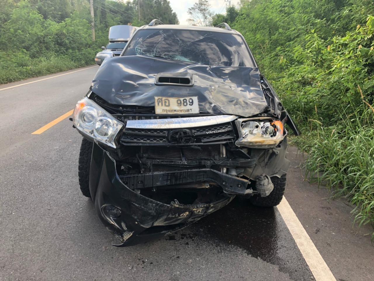 ขบวนกฐินจากกรุงเทพฯ กำลังเดินทางจะไปทอดกฐินที่วัดป่าบ้านไพรจิต จ.สระแก้ว หลังผ่านจุดที่เกิดเหตุรถตู้ชนช้างเมื่อเช้าเพียง 200 เมตร ก็ไปชนกับช้างป่าอีกตัวอย่างจัง รถพังยับ โชคดีไม่มีคนเจ็บ...
