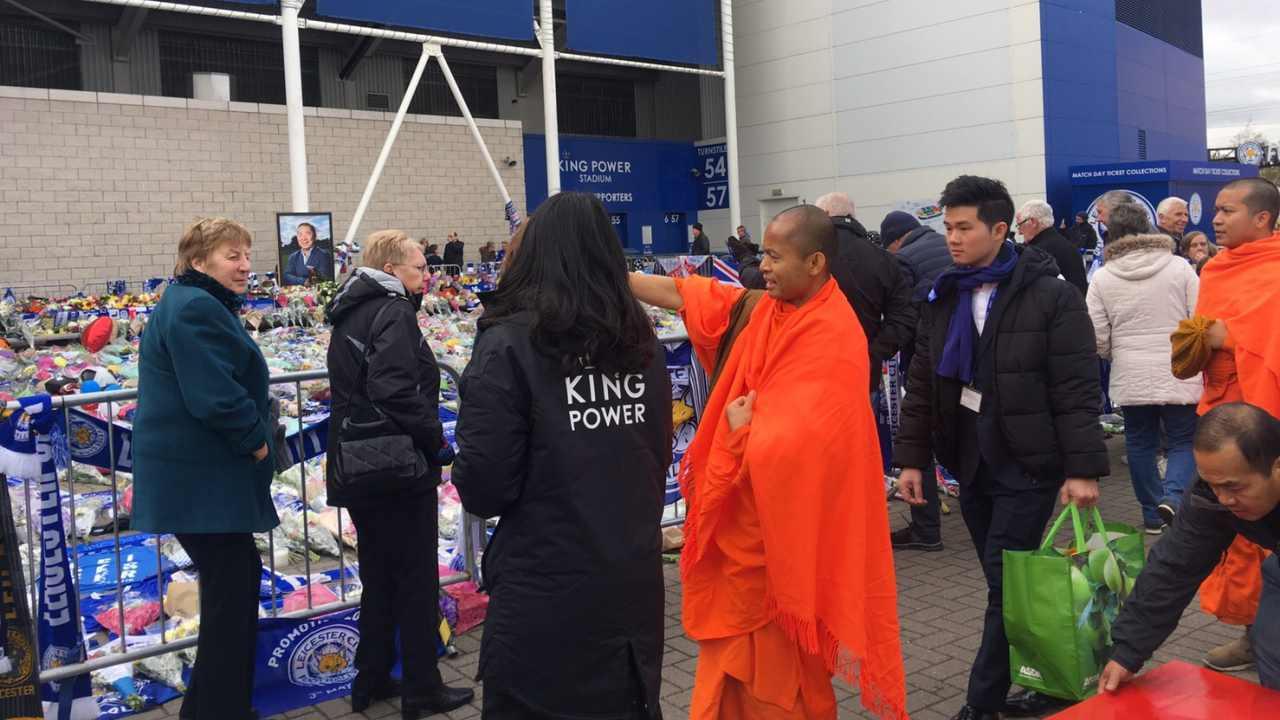 ผู้สื่อข่าวไทยรัฐรายงานว่า เมื่อช่วงเช้าวันที่ 29 ต.ค. ตามเวลาท้องถิ่น พระครูสิริธรรมประทีป เจ้าอาวาสวัดพุทธาราม เมืองลีดส์ ประเทศอังกฤษ ได้นำคณะสงฆ์และตัวแทนกรรมการวัด พร้อมด้วยพระธรรมทูตไทยในสหราชอาณาจักรไปร่วมพิธีวางพวงหรีดและไว้อาลัยแก่นายวิชัย ศรีวัฒนประภา ที่สโมสร ฟุตบอลเลสเตอร์ซิตี้ ในฐานะที่นายวิชัยเป็นประธานอุปถัมภ์การสร้างวัดพุทธาราม เมืองลีดส์ เมื่อไปถึงผู้บริหารสโมสรฟุตบอลเลสเตอร์ซิตี้ จัดถวายภัตตาหารเพลแก่คณะสงฆ์ ก่อนจะร่วมพิธีวางหรีดและไว้อาลัย