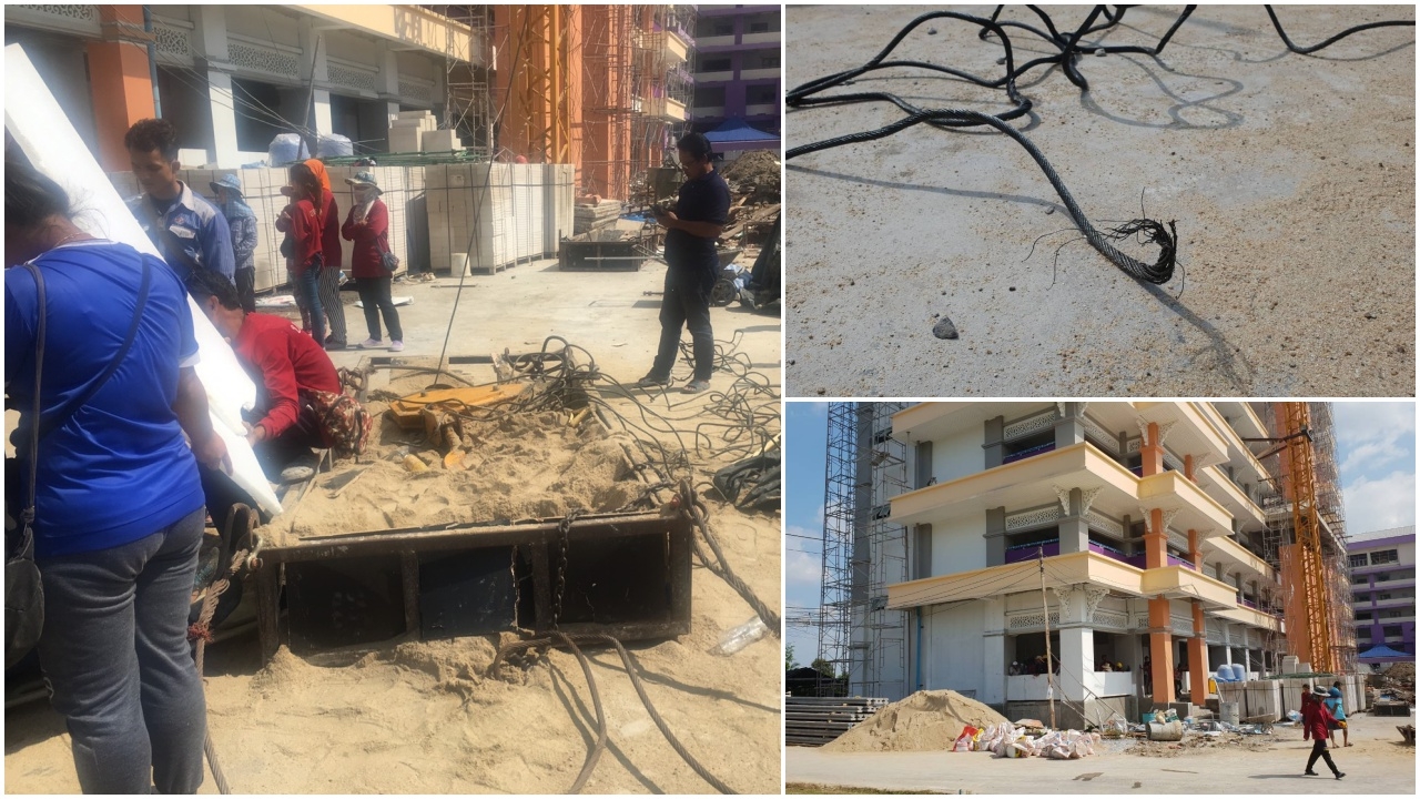 คนงานนั่งกระบะขนทราย ใช้ลวดสลิงให้เครนยกขึ้นจะไปชั้น 12 อาคารก่อสร้างโรงเรียนสามโคก โชคร้ายลวดสลิงขาด ร่วงตกกระแทกพื้น ดับ 1 สาหัส 2...