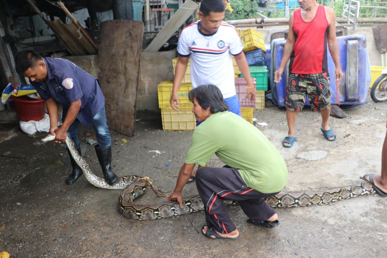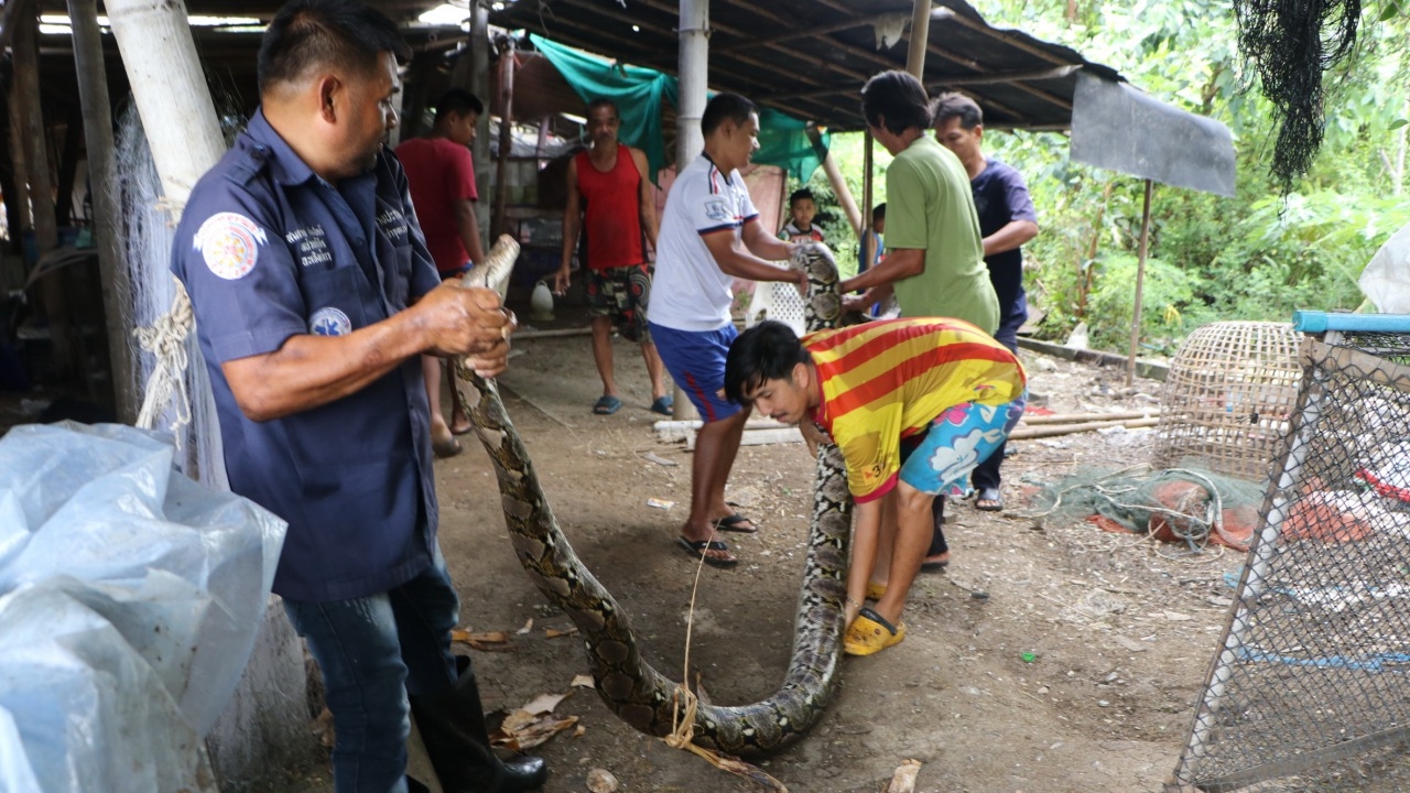 ชาวบ้านหายสงสัยทำไมปลาที่ดักได้หายประจำ หลังพบงูเหลือมขนาดยาว 5 เมตรติดอยู่ในไอ้โง่ในคลองข้างบ้าน ร้องกู้ภัยฉะเชิงเทรามาจับ เพื่อนำปล่อยคืนสู่ธรรมชาติ คาดจะมากินไก่ชนแต่ติดไอ้โง่ก่อน...