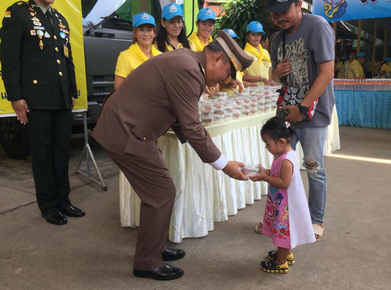 ต่อมาคณะองคมนตรี ได้เดินทางต่อไปยังหอประชุมที่ว่าการอำเภอทับสะแก จ.ประจวบคีรีขันธ์ เพื่อเชิญสิ่งของพระราชทานมามอบให้แก่ผู้ประสบอุทกภัยใน อ.ทับสะแก อีก 1,000 ชุด เพื่อช่วยเหลือ และเป็นขวัญกำลังใจแก่ประชาชนในพื้นที่ ที่ประสบอุทกภัย