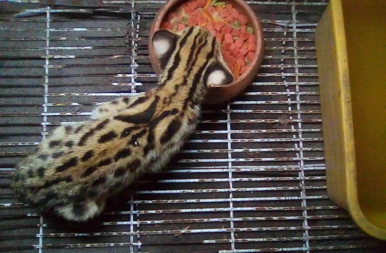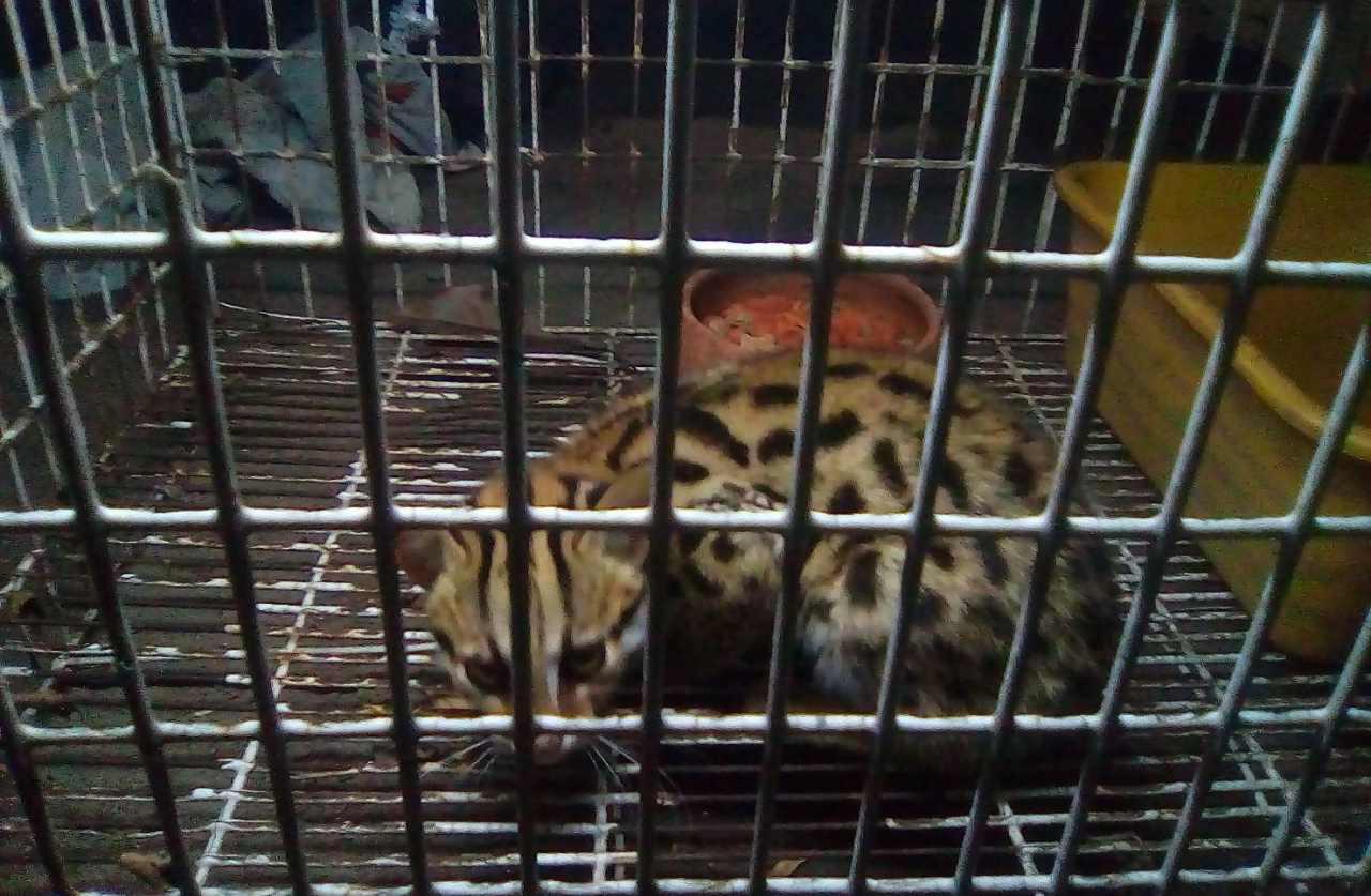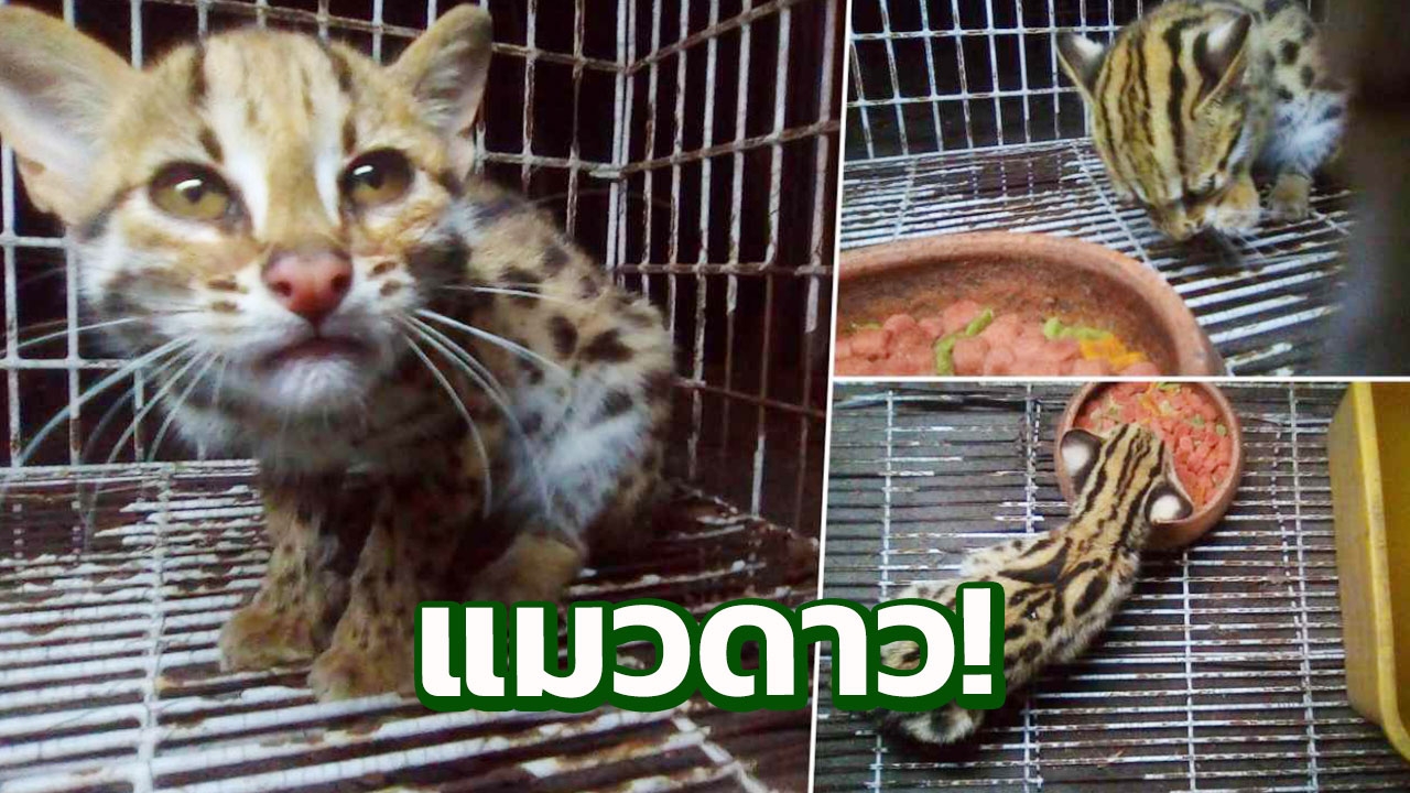 ช่วยแมวดาวน้อย เพศเมีย ติดบ่วงนายพรานที่ด่านช้าง สุพรรณบุรี คนไปเจอบอกได้ยินเสียงขู่ ฟู่ๆ นึกว่างูไปดูพบเป็นแมวดาว สภาพอ่อนแรง นำมาขังกรงให้กินอาหาร แต่กลัวผิดกฎหมาย วอน จนท.มารับไปดูแล