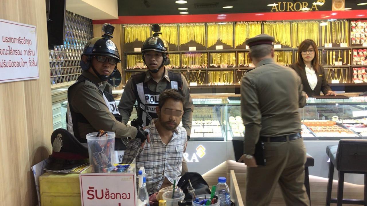 เมื่อเวลา 11.00 น. วันที่ 3 ธ.ค. 61 ร.ต.ท.อภิชัย ไชยสุภาพ รอง สว.สอบสวน สภ.บางบัวทอง จ.นนทบุรี ได้รับแจ้งเหตุว่า มีคนร้ายเป็นชาย 1 คน ทำทีซื้อทองที่ร้านทองออโรร่า บิ๊กซีเอ็กซ์ตร้า ชั้น 2 ถ.ตลิ่งชันสุพรรบุรี ต.บางรักพัฒนา อ.บางบัวทอง จ.นนทบุรี จึงรายงานให้ผู้บังคับบัญชาทราบ จึงพร้อมด้วย พ.ต.อ.ไพศาล วงศ์วัชรมงคล รทท.ผบก.ภ.จว.นนทบุรี พ.ต.อ.สราวุธ สวัสดิชัย รรท.ผกก.สภ.บางบัวทอง พ.ต.ท.วรพัฒน์ วัฒนชัยนันท์ รอง ผกก.สส. พ.ต.ท.ณัฐยุทธ์ แก้วปาน สว.สส. พร้อมกำลังชุดสืบเดินทางไปตรวจสอบที่เกิดเหตุ