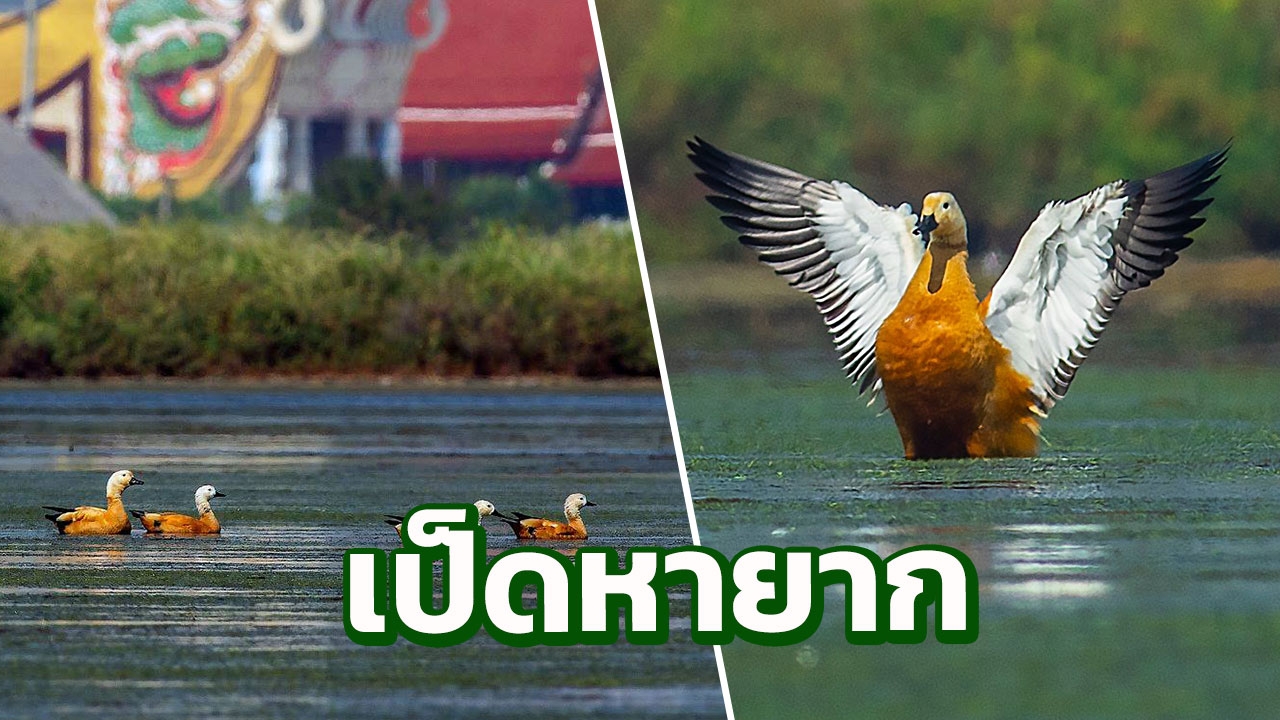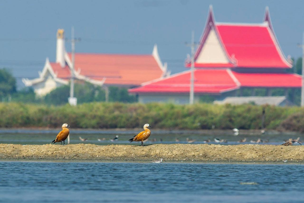 พบเป็ดพม่า (Ruddy Shelduck) เป็ดหายาก นกอพยพ ที่วัดนอกปากทะเล อ.บ้านแหลม จ.เพชรบุรี นักดูนกตื่นตัว จัดกลุ่มเข้าพื้นที่ ติดตามพฤติกรรมและบันทึกภาพ ทำประวัติการพบเจอ