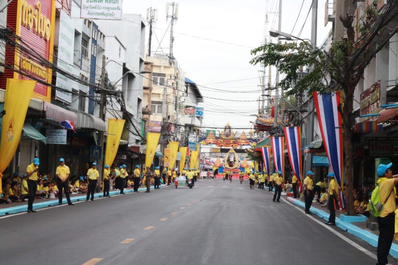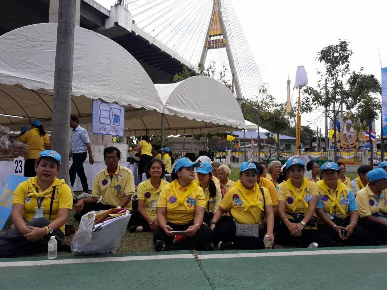 โดยทุกคนแต่งกายสวมเสื้อสีเหลือง เพื่อมารอรับเสด็จตามเส้นทางที่กำหนดผ่านสามแยกพระประแดง เข้าสู่ถนนนครเขื่อนขันธ์ ผ่านตลาดพระประแดง มุ่งสู่สวนสุขภาพลัดโพธิ์ ที่มีพระบรมรูปทรงงานของในหลวง รัชกาลที่ 9 ซึ่งตลอดทั้งวันจนถึงค่ำ ประชาชนก็ยังคงรอชื่นชมพระบารมีพระองค์ท่านกันอย่างเนืองแน่นตลอดทั้ง 2 ฝั่งถนน