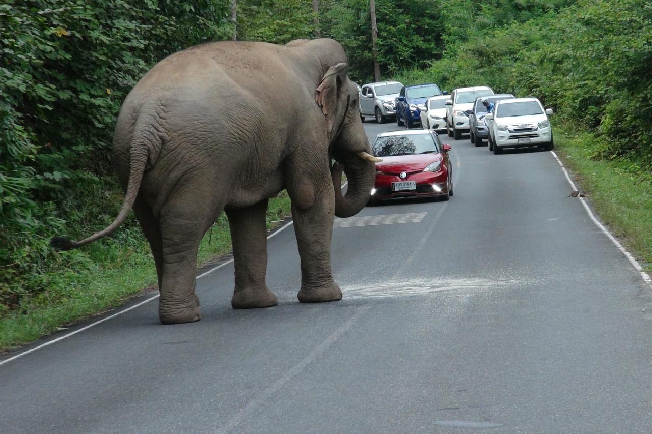 ในช่วงเย็น เจ้าหน้าที่ชุดเฝ้าระวังและช่วยเหลือสัตว์ป่า อุทยานแห่งชาติเขาใหญ่ รับแจ้งจากผู้ผ่านเส้นทางว่า มีช้างออกมาปิดถนนทำให้นักท่องเที่ยวไม่สามารถผ่านทางได้ที่บริเวณหลัก กม.17 ก่อนถึงน้ำตกเหวนรก เขตพื้นที่ของจังหวัดปราจีนบุรี และช้างตัวดังกล่าวกำลังรื้อค้นหาอาหรบริเวณท้ายรถของนักเที่ยว ได้ข้าวสารไป 1 กระสอบ ยืนกินอยู่กลางถนน