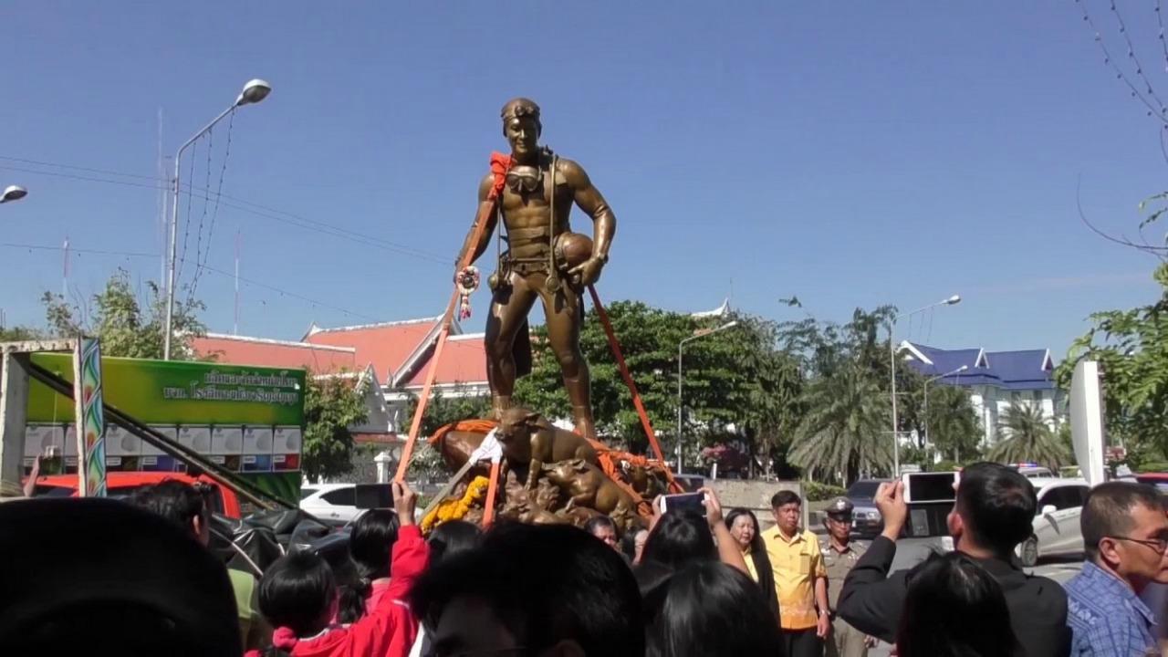 เมื่อเวลา 10.00 น. วันที่ 11 ธ.ค. ที่บริเวณตรงข้ามศาลากลางจังหวัดอ่างทอง ถนนโพธิ์พระยา – ท่าเรือ ตำบลบางแก้ว อำเภอเมือง จังหวัดอ่างทอง นายประมวล มุ่งมาตร รองผู้ว่าราชการจังหวัดอ่างทอง นำบรรดาเหล่าข้าราชการ พนักงาน ลูกจ้าง และประชาชนชาวจังหวัดอ่างทอง ร่วมให้การต้อนรับ ชื่นชม และถ่ายรูปกับรูปหล่อเสมือนของ จ่าแซม นาวาตรีสมาน กุนัน วีรบุรุษถ้ำหลวงขุนน้ำนางนอน เพื่อไว้เป็นที่ระลึก หลังจากอาจารย์เฉลิมชัย โฆษิตพิพัฒน์ ได้มอบหมายให้บริษัทเอเชียไฟน์อาร์ท จำกัด เททองหล่อรูปเหมือนของจ่าแซม ขนาดรูปหล่อ ความสูง 3.20 เมตร ฐานกว้าง 2.50 เมตร