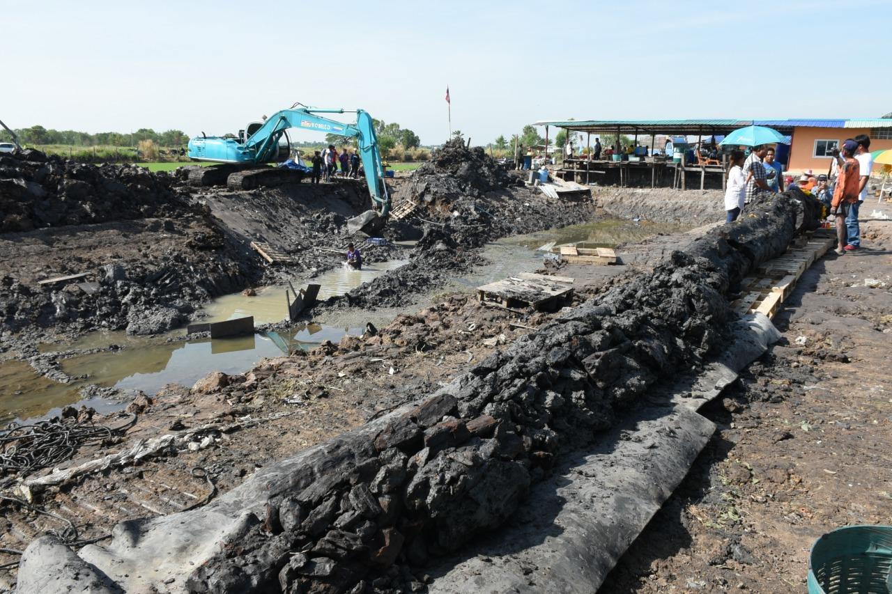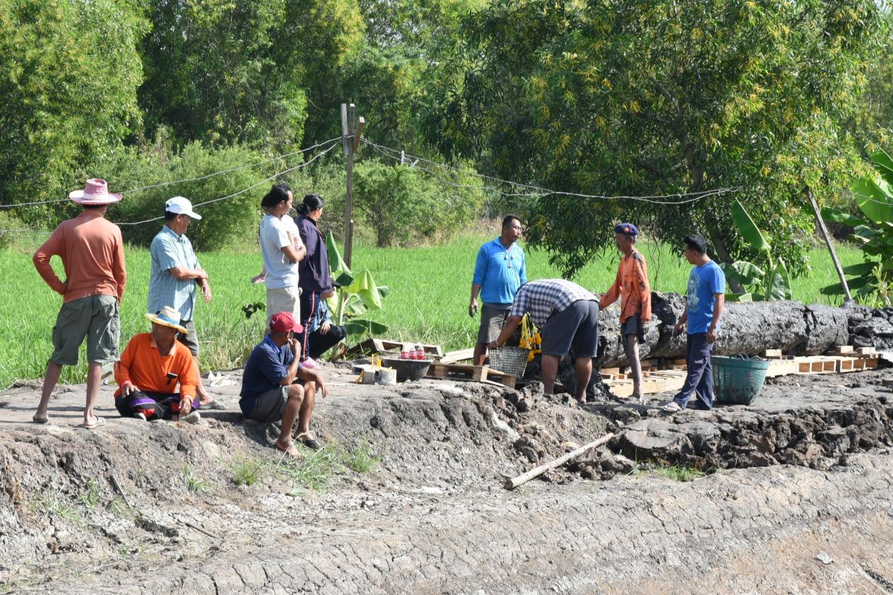 ที่บ่อปลาของบ้านหลังดังกล่าว มีประชาชนเดินทางจุดธูป พร้อมกับคล้องพวงมาลัย และถวายน้ำแดง ให้กับต้นตะเคียนขนาดใหญ่ที่มีความยาวถึง 8 เมตร ลำต้นเริ่มเปราะบาง โดยเจ้าของบ้านซึ่งไม่ประสงค์ออกนามเช่ารถแบ็กโฮขุดขึ้นมาไว้ด้านบนเพื่อให้คนมากราบไหว้ขอโชคลาภ โดยที่ภายในบ่อปลามีการสูบน้ำออกจนหมด และใช้คนลงไปงมค้นหาตามเลนที่ยังมีช่วงยอดลำต้นตะเคียนที่หักจมดินโคลนอยู่เพื่อนำขึ้นมาเรียงกันให้อยู่ในสภาพที่สมบูรณ์ที่สุดที่สามารถจะทำได้