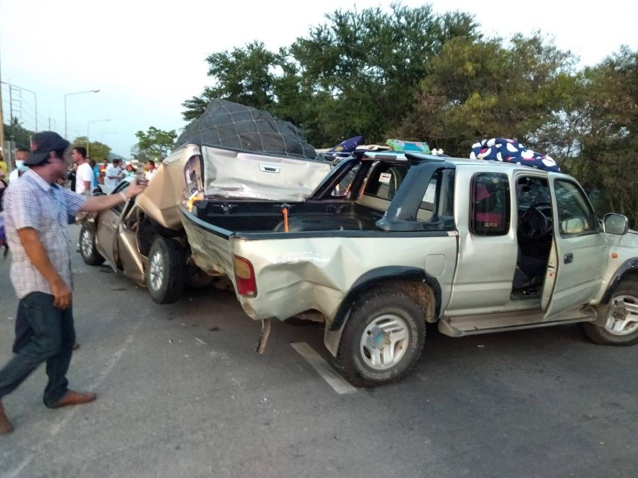บริเวณท้ายรถกระบะคันดังกล่าวพบรถกระบะโตโยต้า ไทเกอร์ ตอนครึ่ง สีบรอนด์เทา ทะเบียน บน 9978 ประจวบคีรีขันธ์ มีนายสมโภชน์ จันทร์เฉย อายุ 40 ปี ชาวบ้าน หมู่ 6 ต.ชัยเกษม เป็นคนขับ ซึ่งได้บรรทุกนักเรียน รร.บ้านมรสวบ มาทั้งหมด 12 ราย และห่างออกไปประมาณ 50 เมตร พบรถเก๋ง โตโยต้า วีออส สีบรอนซ์เงิน ทะเบียน กจ7633 ประจวบคีรีขันธ์ น.ส.ศรินทร ถี่ถ้วน อายุ 31 ปี ชาวบ้าน หมู่ 9 ต.ชัยเกษม แม่ค้าขายของออนไลน์ เป็นคนขับบาดเจ็บเล็กน้อย สภาพด้านท้ายรถบุบด้านหน้าชนติดอยู่กับการ์ดเลน บริเวณจุดกลับรถดังกล่าว ส่งผลให้มีผู้ได้รับบาดเจ็บรวมกันกว่า 15 ราย ส่วนมากเป็น เด็กนักเรียน รร.บ้านมรสวบ ต.ชัยเกษม อ.บางสะพาน จ.ประจวบคีรีขันธ์ ซึ่งกระเด็นตกมาจากท้ายรถกระบะ เจ้าหน้าที่จึงเร่งทยอยนำผู้บาดเจ็บทั้งหมด ส่ง โรงพยาบาลบางสะพาน